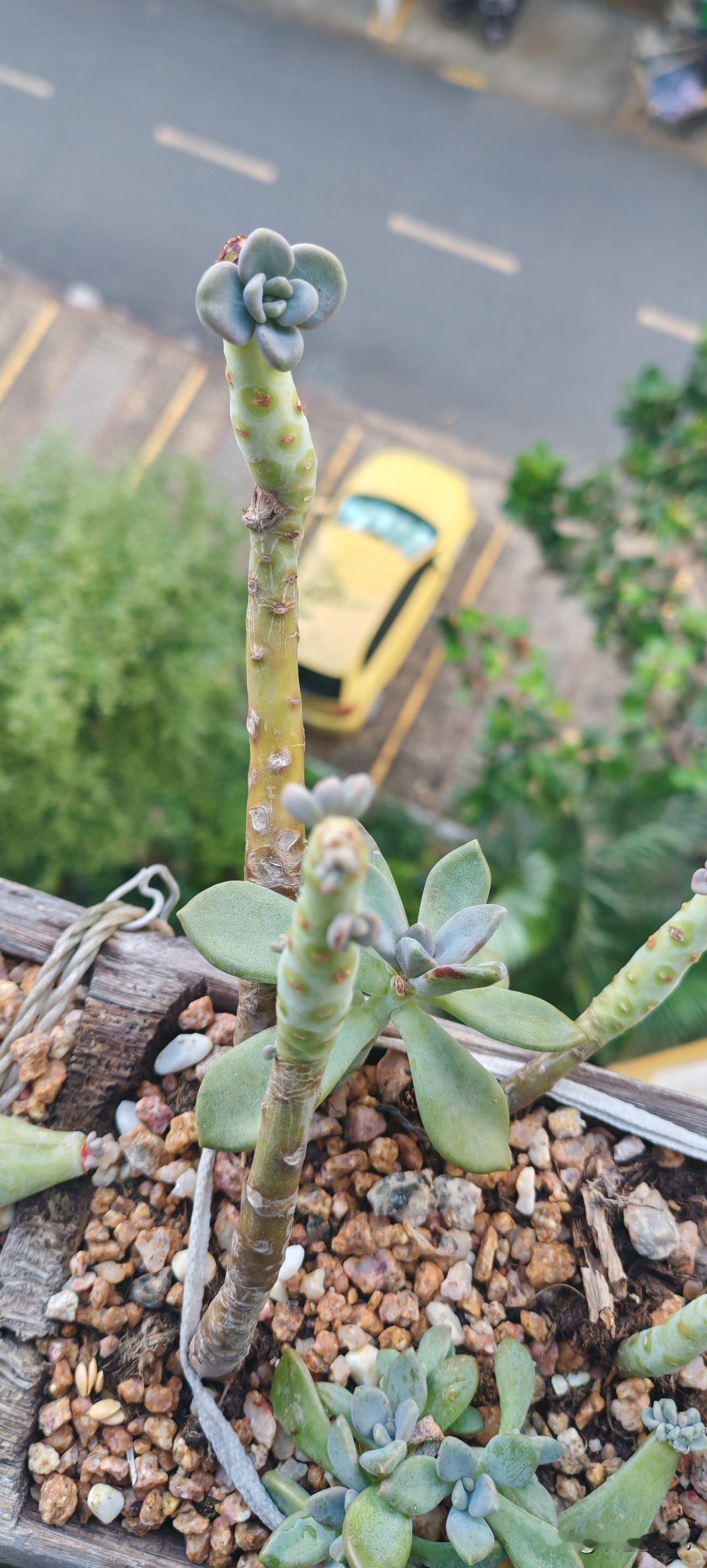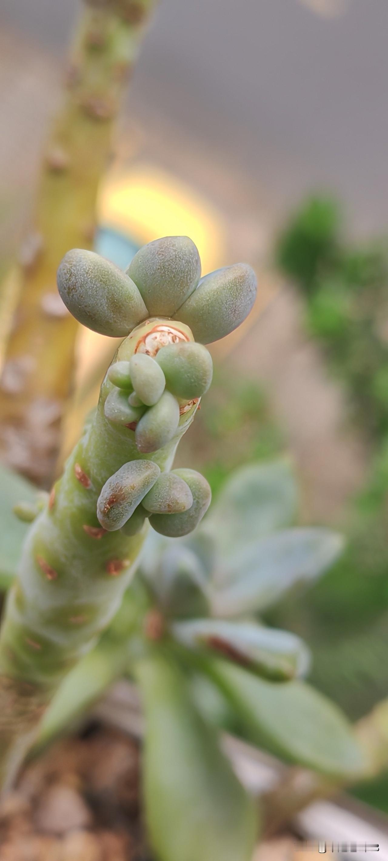 今年的台风比较厉害,因为是用猪槽种的肉肉,所以没有办法把它们搬回来室内,也没办法给它们整挡风装备,楞是让它们在狂风中摇曳。 结果就是摇掉了一些叶片,本来很多年了的多肉想着把它们种成老桩,所以一直没去动它们。 现在部分叶子掉了,也丑丑的,所以干脆一下把它砍头算了,在长出新芽了,会不会更好呢? 于是一顿猛虎操作,把所有的芯都是摘掉了,每棵只留下二三片下面的叶片。 过了几天,多肉杆子上就长出很多小芽来,比以前还胖嘟嘟的,倒是好看,也没有喷多肉催芽素。 有时候变化一下也不错,这多肉生命力太强了。
