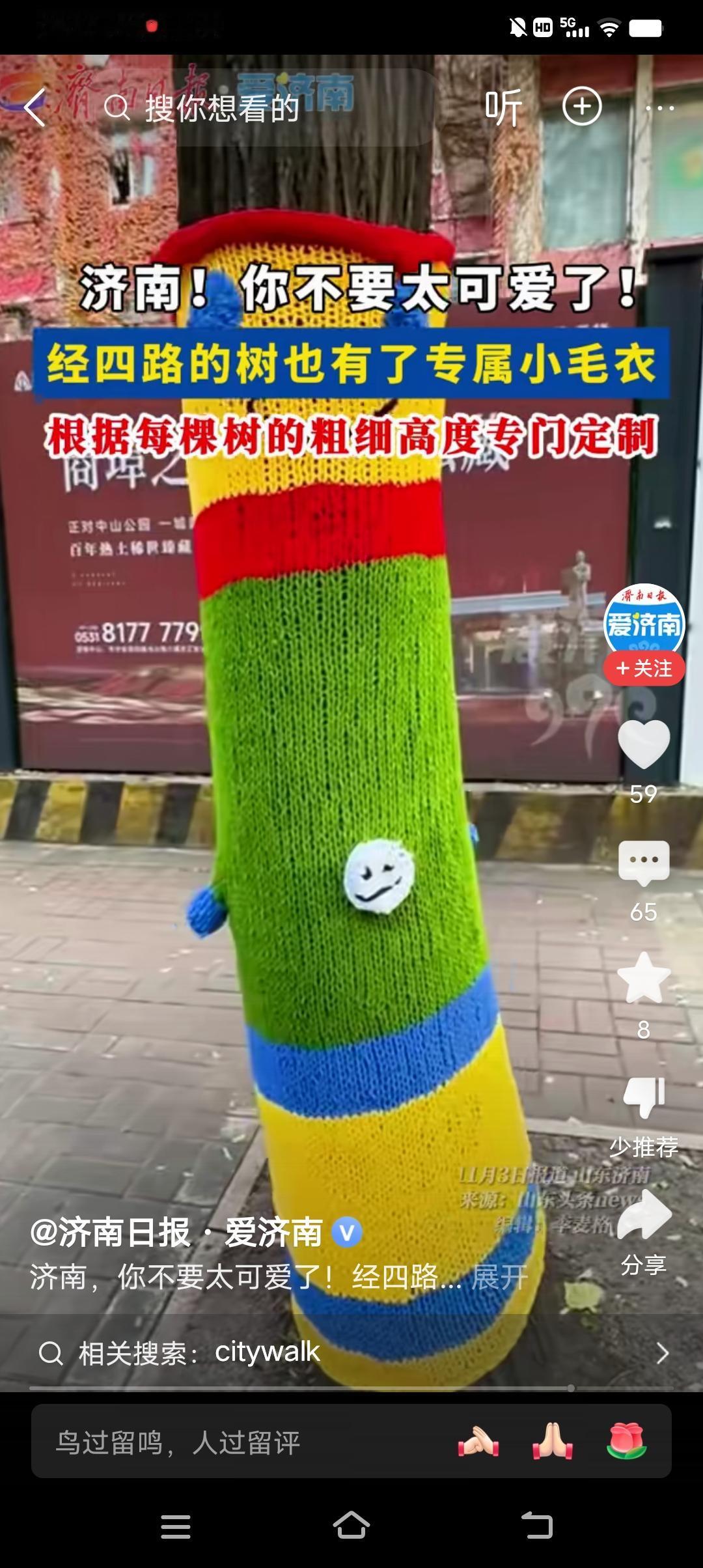 天冷了,济南的树又开始穿毛衣了,萌萌的,很可爱。记得以前日照的树也穿过毛衣,不知道怎么了,以后就不穿了。欢迎大家留言文明交流!