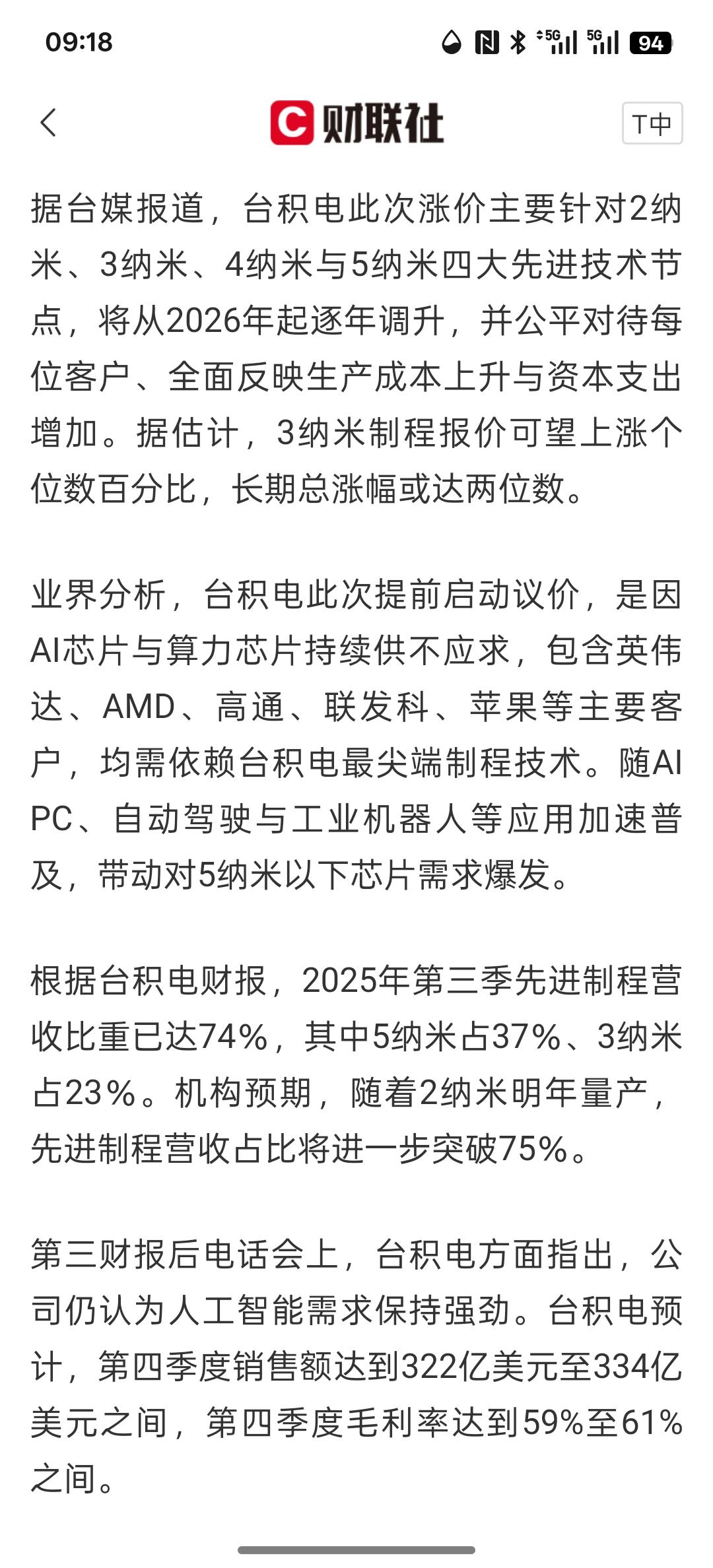 明年起5纳米以下先进制程至少涨3%?台积电回应:定价策略不以机会导向,随着全球高科技企业不断的发展,尤其是AI人工智能快速发展,包括自动驾驶技术以及机器人的发展,都将大量的带动5纳米以下的芯片制程需求量大增! 那么,在电动化汽车进入智能时代,自动驾驶的时代将会迎来芯片一个成长的周期!而导致带动芯片的需求量出现爆发增长!
