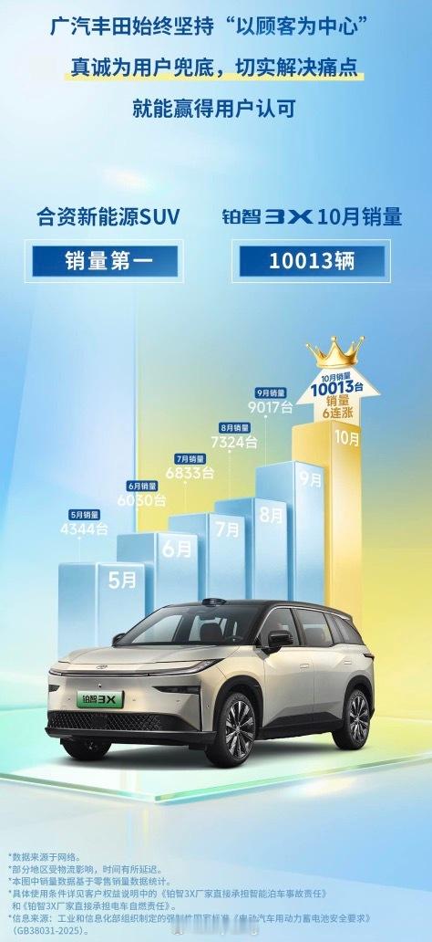 广汽丰田10月销量高达71604台,全新铂智3X单月销量强势破万,连续6个月销量一路向上,势头超猛!