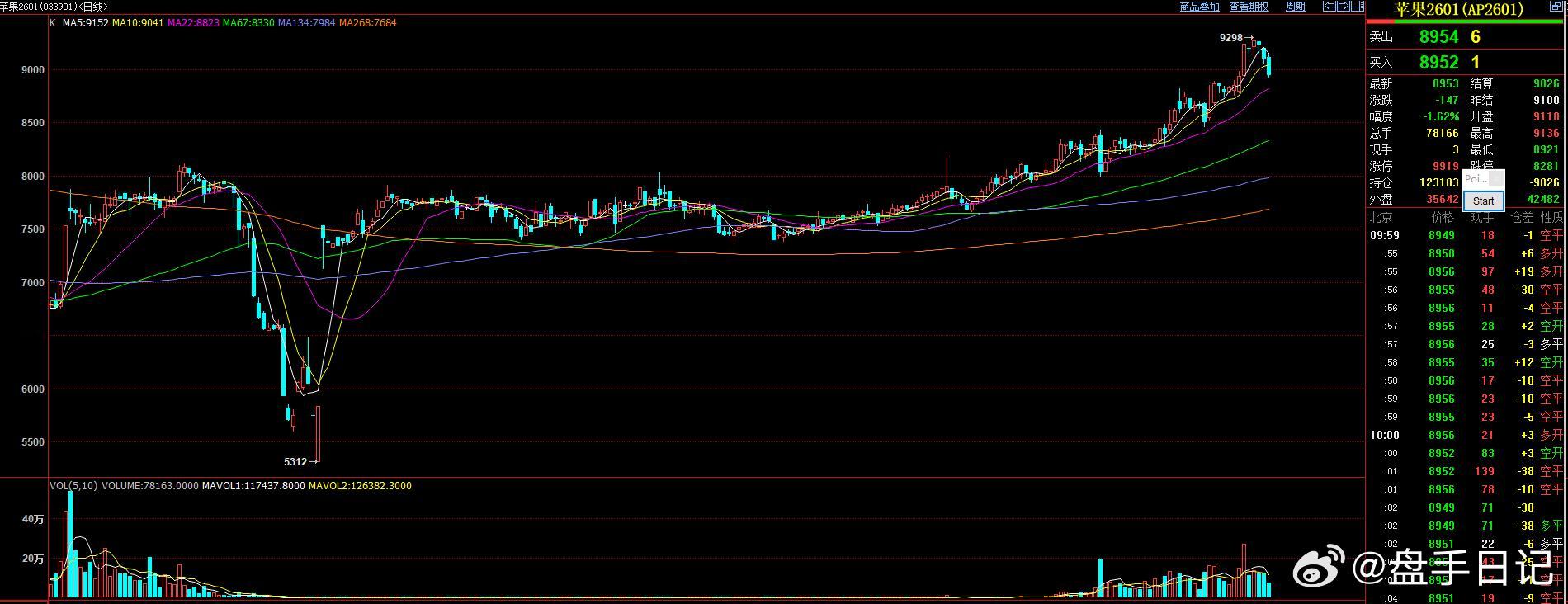 上周五直播我有讲会抓苹果,但苹果本周直接开始回落,有点不给机会。高位震荡时间都没给!苹果期货[超话]