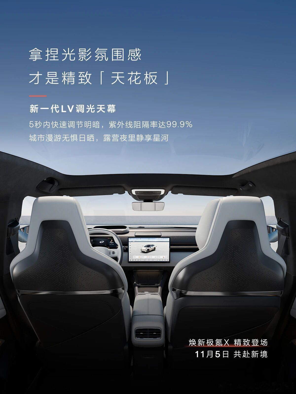 焕新极氪X焕新极氪x也公布了一些换代的细节,之前的电动门,滑移屏,后排翻折,副驾零重力,冰箱都有保留,还专门为小姐姐新增了调光天幕,隔绝紫外线的干扰。这样设计真的精准的戳了小姐姐的痛点,满足了小姐姐的需求。