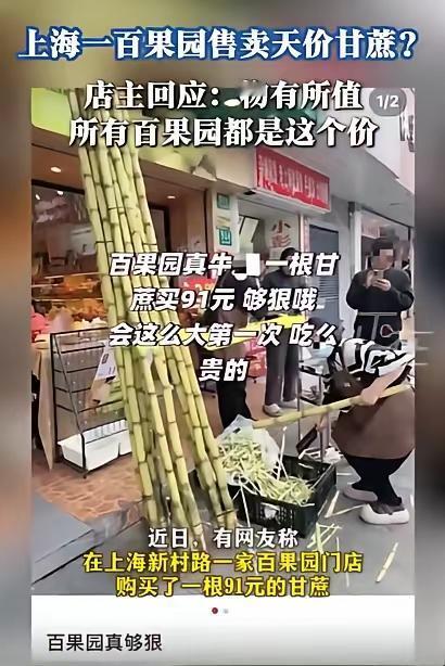 上海一男子在水果店买了根甘蔗,结账时,竟被告知要91元!由于已经削皮,男子只能无奈付钱,事后发文称:够狠哦,长这么大第一次吃!店主回应:物有所值,所有百果园都这个价! 原来,这个甘蔗不是普通甘蔗,而是西双版纳青皮甘蔗,9块9一斤,它一根有八九斤,算下来就接近100块钱,店主说,这个东西确实好,可能价格比外面贵,但物有所值! 有顾客质疑这甘蔗在别地路边摊才卖15元。有网友算账,9.9元一斤换成按根卖顶多也就三十多。 店家坚持“物有所值”,称空运来的甘蔗确实比普通的好吃。 可问题在于,这种平时论根卖的东西改按斤标价,不提前说明就等于挖坑。 要是老板削皮前问一句“这根大概要九十,您还要吗”,顾客还能选普通的。 当事人承认自己太大意,没问清楚。但也有人 说,谁买甘蔗会特意问“是按根还是按斤啊?”。 大家平时买菜也就二三十,突遇九十块难免气不过。更让人烦的是,水果削皮后没法退,顾客只能认栽。 现在网上吵成一片,有人觉得商家套路深,也有说消费者该多长心眼。 店主回应的底气可能来自进货成本,空运的热带甘蔗损耗大,单价高才能回本。 但定价策略藏着风险,按斤卖就得明明白白标出来,不能等顾客掏钱才炸雷。 这事反映出现象级问题,新奇特农产品进城市超市后,定价方式和普通果蔬不同,但多数人没这个概念。 要是店家在显眼处贴个“青皮甘蔗按斤计价”,或者员工主动提醒,纠纷可能就避开了。 现在大家都讨论到底是商家没提醒好还是消费者自己没问清楚。可能每个地方卖东西规矩都不一样,特别是小摊贩和连锁店价差大。 年轻人逛店时,看见稀奇水果最好先问清计价方式,别光顾着挑选就忘了这茬。 最后这事儿闹到热搜,很多人说以后买水果先问价再下手。 商家也在反思,或许以后遇到顾客拿这种重的甘蔗,得主动提醒一下。毕竟生意要靠回头客,不能总靠套路赚钱。