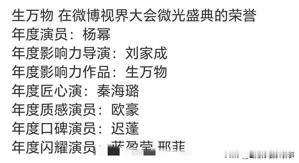 杨幂摘得微博年度演员,《生万物》再添实绩 2025微博视界大会上,杨幂凭借《生万物》拿下“年度演员”荣誉,舞台上一袭宝蓝礼裙衬得气场全开,实绩单再添重磅一笔。 从待播剧的高热度到奖项加身,她的“爆剧女王”标签始终带着强含金量——既有作品的口碑支撑,又有市场的持续认可,这波荣誉算是实至名归,也让人更期待她后续的新角色了。