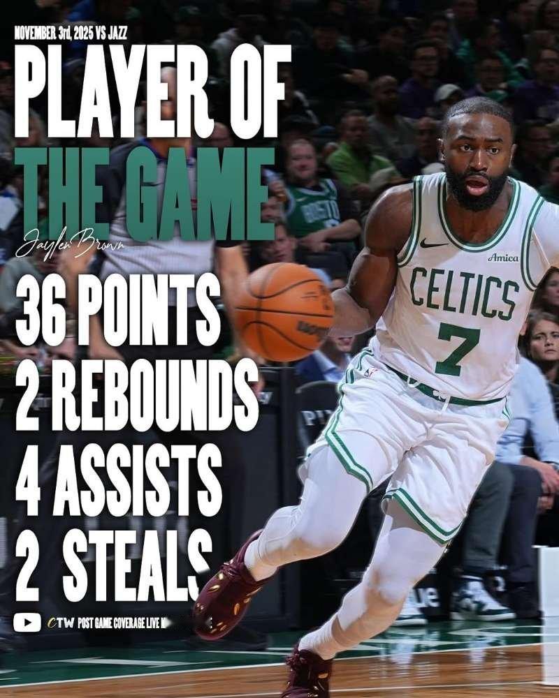 继续出色发挥!杰伦本场出战37分钟,28投13中,其中三分球9投0中,罚球11投10中,空砍36分2篮板4助攻2抢断!凯尔特人热爱日记