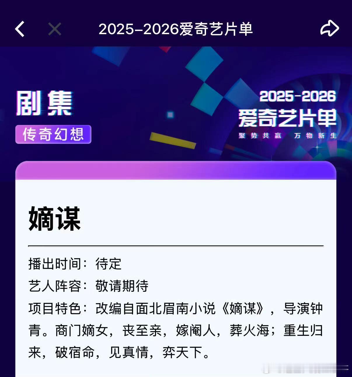 嫡谋组讯12月开机嫡谋12月开机原著党狂喜!面北眉南亲自操刀编剧,《嫡谋》官宣12月横店开机!何与、包上恩领衔主演,携手导演钟青解锁商门嫡女重生逆袭路,宅斗藏温情,权谋见真心,这场宿命博弈坐等开播!