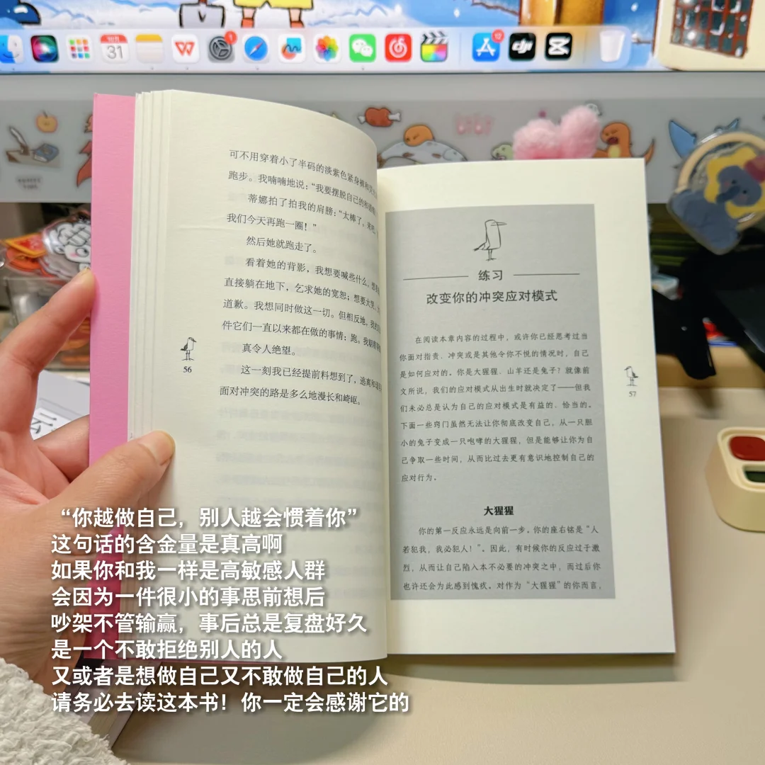这本书让我觉得“见书见己”真的很戳我心,刚开始读引子我就觉得这难道真的不是在讲我吗?习惯当老好人、再怎么样都不想和对方撕破脸、受窝囊气也要保持微笑不多说一句……时间长了真的特别压抑,最后崩溃后,整个人像被台风袭击,脱了一层皮一样难受,要靠很长一段时间恢复元气。