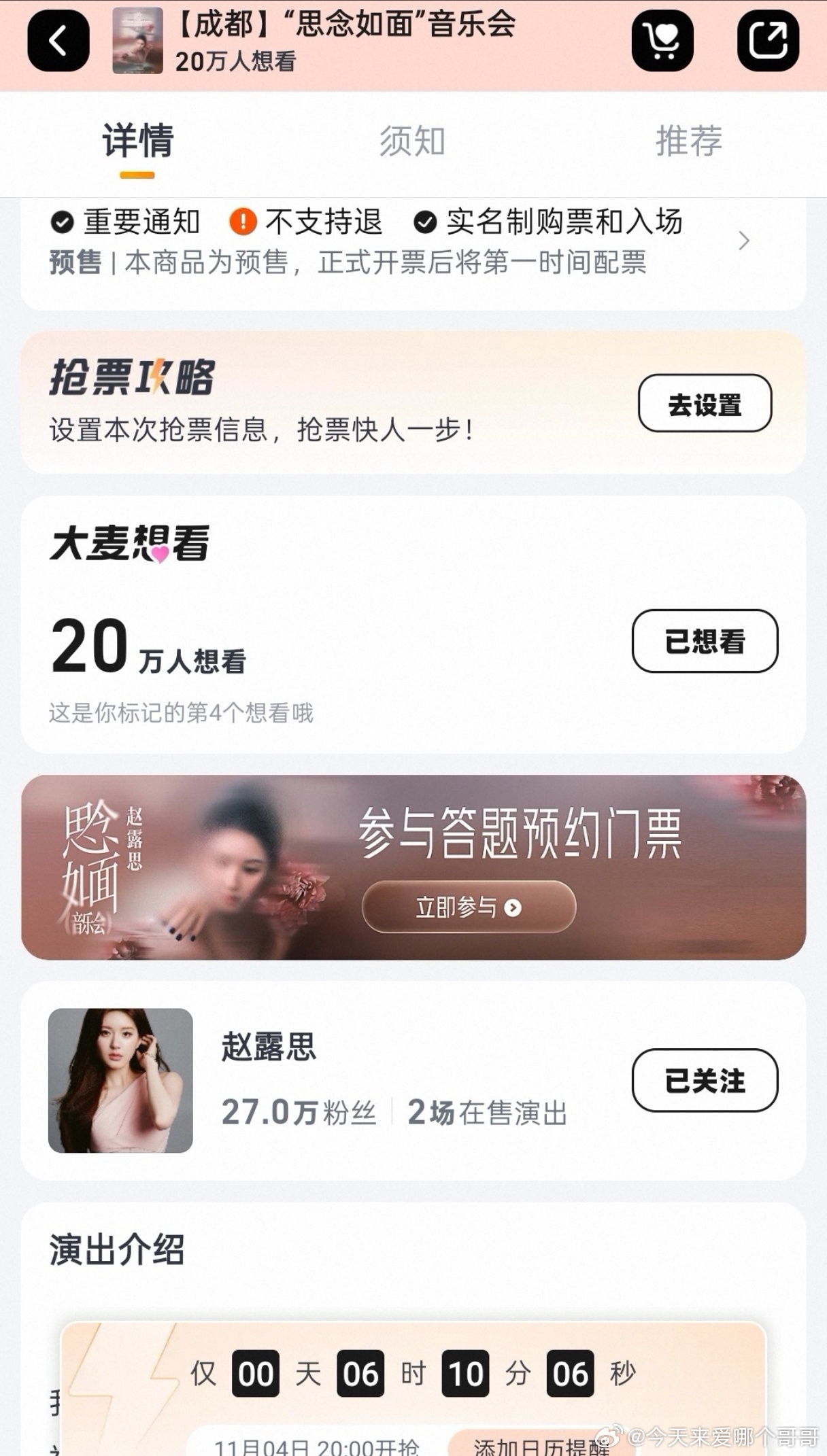 赵露思思念如面生日音乐会11月8日在成都举办!期待[努力]