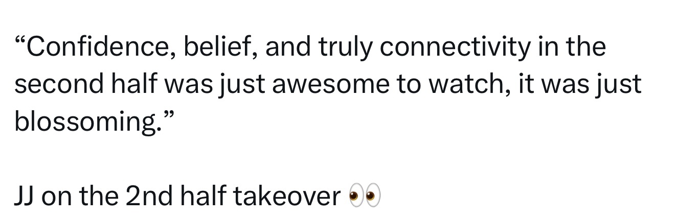 雷迪克:“我对这个团队以及我们未来的发展潜力感到兴奋。下半场展现出的自信、信念和真正的默契令人惊叹,简直是如花般绽放。”
