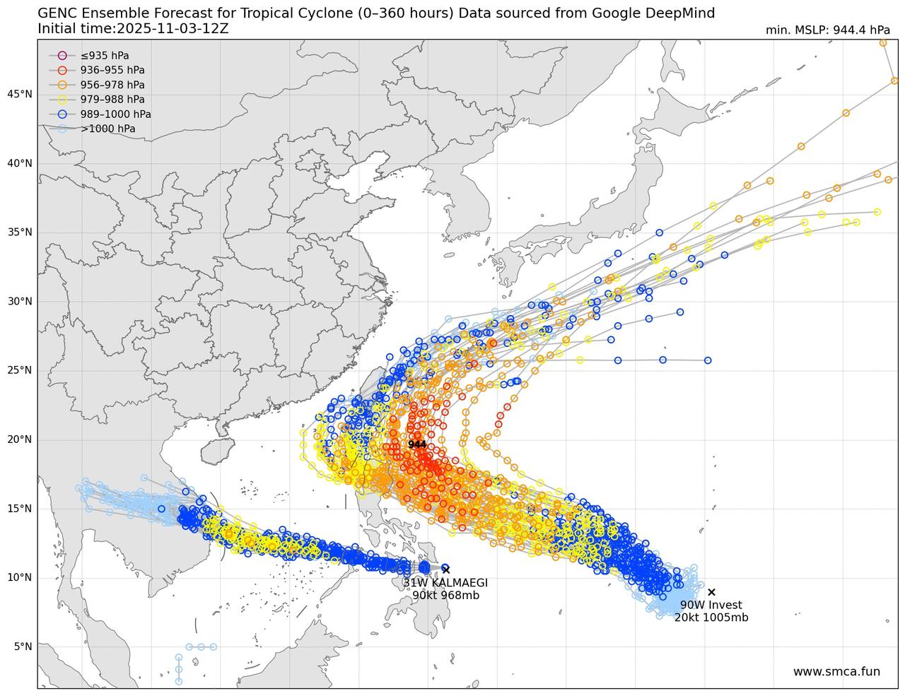 在菲律宾莱特岛沿海登陆,登陆时中心附近最大风力达14级(42米/秒)。而过后往南海发展,预计爆发力度减弱,我国下调其强度,巅峰预警只有14级了,看来风切影响扩大。 台风凤凰 也是即将生成,不过对于这个台风后期的变化走动有点复杂,在菲律宾东部存在变数,只不过当下大部分都是认为转向偏北。 但是这个转弯的幅度,在什么地方转弯,也是影响我国东部区域的关键。所以,后续要注意波动发展。台风超话