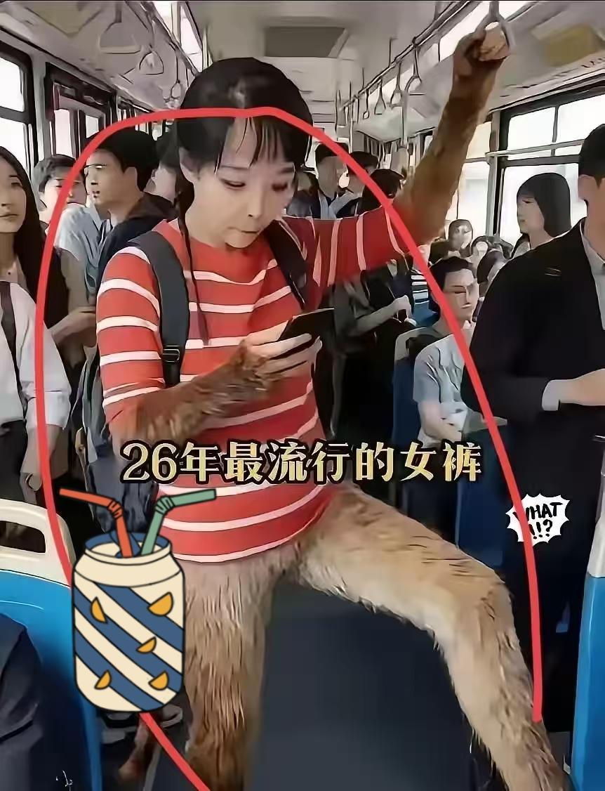 家人们谁能想到, 2026年的时尚居然野到这种程度! 你看这款“猴腿裤”,毛茸茸的腿型设计往公交上一杵,旁边大哥的“WHAT!?”都快溢出屏幕了。 也不知道是时尚圈开始“物种杂交”,还是野生审美彻底逆袭。反正这裤子我是不敢碰的,怕穿上就成“花果山分山主”。你们说说,这潮流能蹦跶几天?
