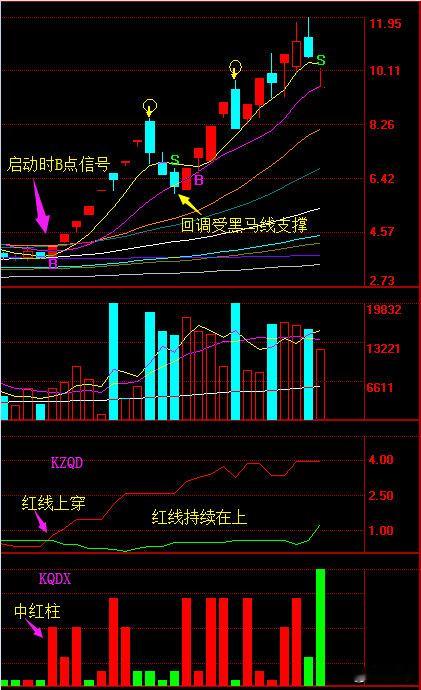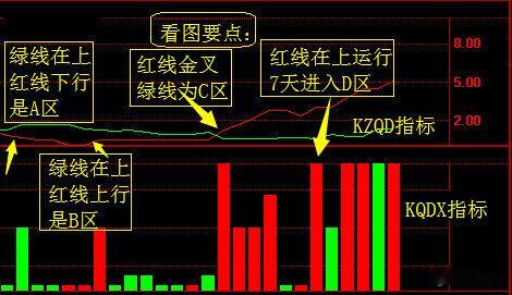 红绿线(KZQD)与红绿柱(KQDX)是笔者研制的独家指标,原是专为专业版《九阳之星》打造的拳头指标,2008年起移植到普通版《盘口之星》上,2014年起开始对外推广(前几年不舍得),运用这二个指标可以比较好的判断个股当前所处的状态:
