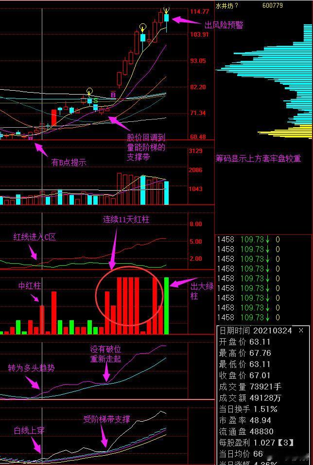 特别提醒:软件只是工具,指标只是参考,所有信号都是依据数据根据模型而来,还要受市场环境、题材热点、资金及人气等实际因素影响,故参考时要综合考虑,不能机械绝对引用。若参考笔者的观点及信号,以此操作产生的盈亏与笔者无关,赚了恭喜你,亏了请勿怪,这就是股市,特别强调:股市有风险,操作须谨慎。