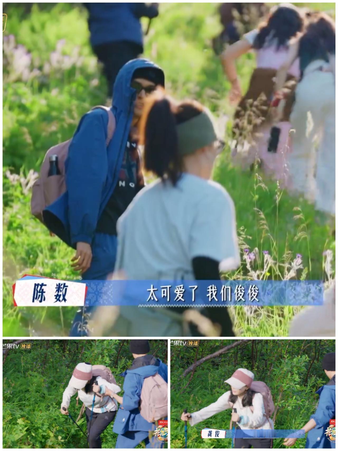 陈数以为龚俊是为了她做这件事, 殊不知 龚俊做那么多就是为了 她。 陈数和李沁一直走在 挪威爬山队伍的最后面。 龚俊总是在某个地方 默默等待她们。 眼看那英他们已经走远, 只有龚俊停下来不动, 边唱歌边等待陈数和李沁。 就这样走走停停, 眼看要上一个陡坡, 龚俊先扶陈数上去, 然后伸出手, 温柔的扶着李沁的手, 帮助她上去, 久久不愿撒手。 这一切那么大方自然。 似乎没有人会注意到。 但是网友看到这一幕 激动坏了, 觉得终于看到 李沁和龚俊“牵手”了。 这个情况就像, 一个男同学扶了一百个女同学上坡, 为的只是有机会 扶那个自己心爱的人一下。 前面99个人都是“工具人”与“铺垫”。 陈数当下还不知道自己当了“工具人”, 一个劲的感谢。 但是龚俊本身就是一个有暖人, 无论他是否喜欢李沁, 他都会走到最后, 帮助李沁和陈数。 也许就是因为龚俊是这样的一个 毫无目的的对他人好的人, 所以才值得网友喜欢吧。