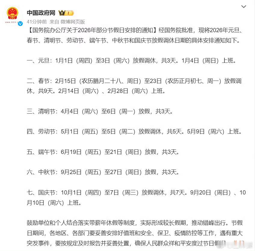 2026春节放9天假 只看到刺眼的“调休”二字。