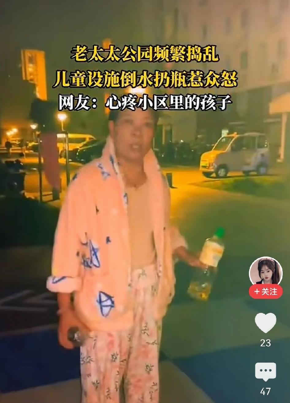 老太太往儿童设施上倒水,上面坐着的人都被她赶跑了。紧急呼叫这位老人的儿女子孙,如果老太太有病要及时带她去医院,不要耽误了治疗,害人害己。也建议公园管理人员尽到维护公共设施的责任,对破坏公共设施、扰乱他人休息的行为予以制止和惩戒,公司索赔索赔,该报警报警。 摔倒老人 老人救人 老人就医 都来关心老人 带小孩照顾老人 老年人就医 老人心里问题 扶老人遇 见