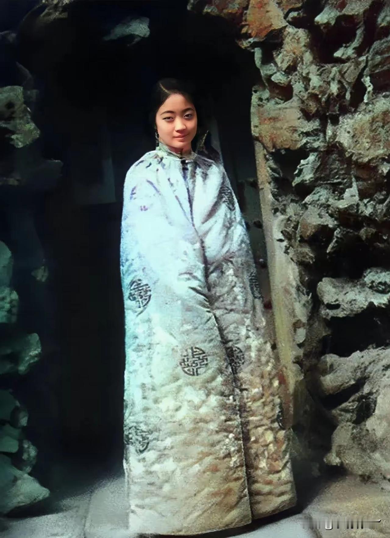 清朝末代皇后婉容,一九二二年在紫禁城御花园堆秀山的珍贵留影。时年十六岁,笑容婉约,但是黑眼圈好重啊!