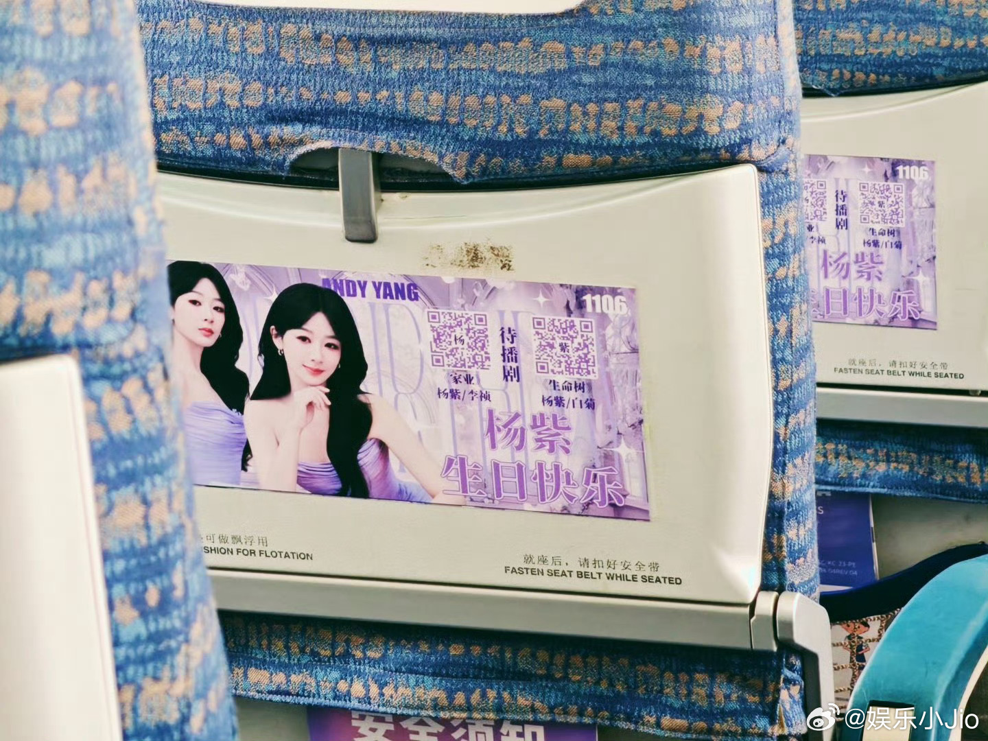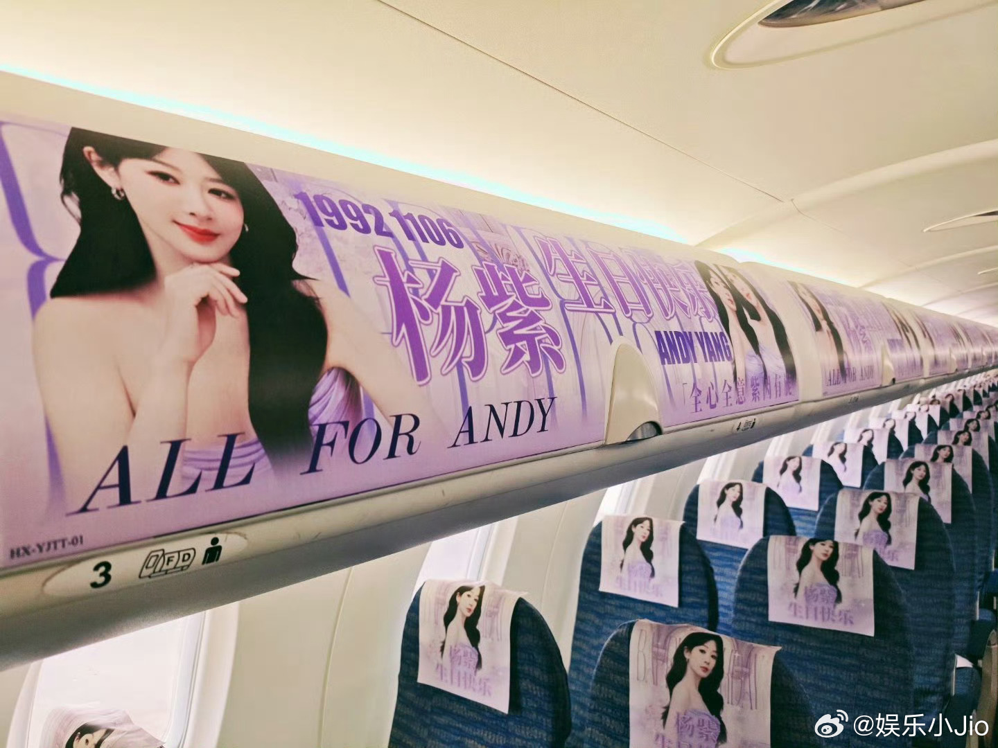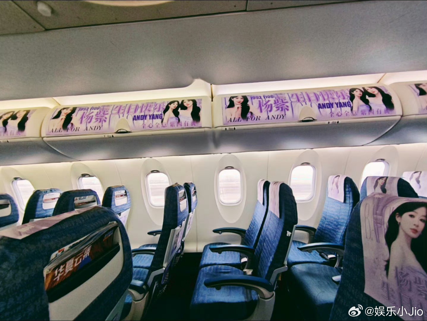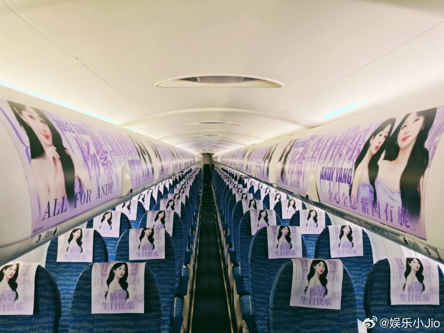 杨紫后援会为杨紫即将到来的生日准备的包机应援,整个机舱都是杨紫的照片[馋嘴][馋嘴]粉丝好用心啊