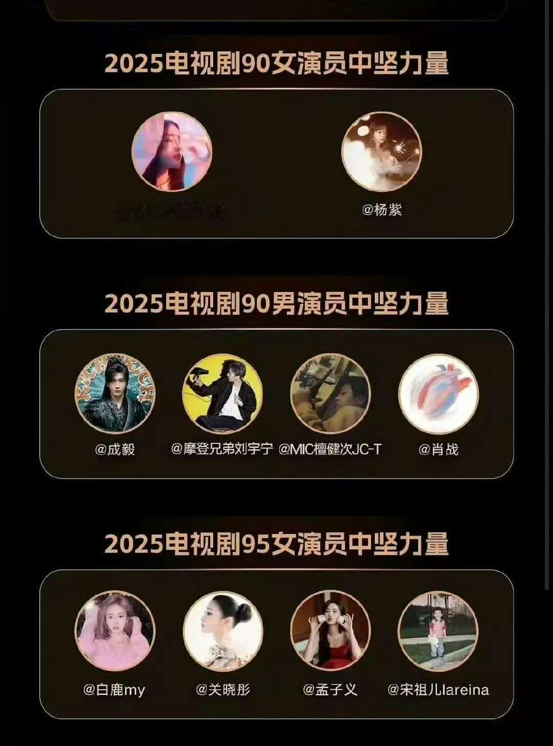 男女演员中坚力量内娱中坚力量演员内娱中坚力量演员,白鹿 孟子义 宋祖儿 关晓彤