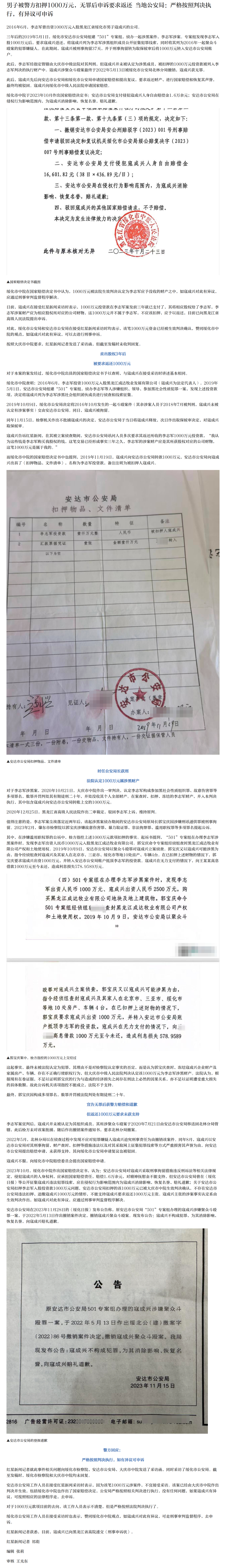 【#男子被警方扣押1000万无罪后申诉返还#】#警方回应男子被扣押1000万无罪后申诉返还#2016年6月,李志军曾出资1000万元入股黑龙江省绥化市男子寇成兴的公司。三年后的2019年5月1日,绥化市安达市公安局组建“501”专案组,侦办一起涉黑案件,李志军涉案。专案组发现李志军入股1000万元后,要求寇成兴退还,将寇成兴列为李志军涉黑组织成员公开征集犯罪线索,同时将其列为2016年一起聚众斗殴案的犯罪嫌疑人。在此期间,寇成兴被刑事拘留37天,并于刑事拘留转为取保候审后将1000万元转入安达市公安局账户。此后,李志军经指定管辖由大庆市中级法院对其判刑,但寇成兴并未被认定为涉黑成员,被扣押的1000万元投资款被列入李志军判决的执行财产中。寇成兴涉聚众斗殴案最终于2022年5月13日被绥化市公安局北林分局撤销,寇成兴获无罪。此后,寇成兴先后向安达市公安局和绥化市公安局申请国家赔偿和提出复议,要求返还财产、进行国家赔偿和恢复其声誉,最终均被驳回。寇成兴向绥化市中级人民法院申请国家赔偿。绥化市中院于2023年10月作出国家赔偿决定书:安达市公安局支付侵犯寇成兴人身自由赔偿金1.6万余元;安达市公安局在侵权行为影响范围内,为寇成兴消除影响,恢复名誉,赔礼道歉。绥化市中院在国家赔偿决定书中认为,1000万元被法院生效判决认定为李志军应予没收的财产之中,如寇成兴对此有异议,应通过刑事审判监督程序解决。