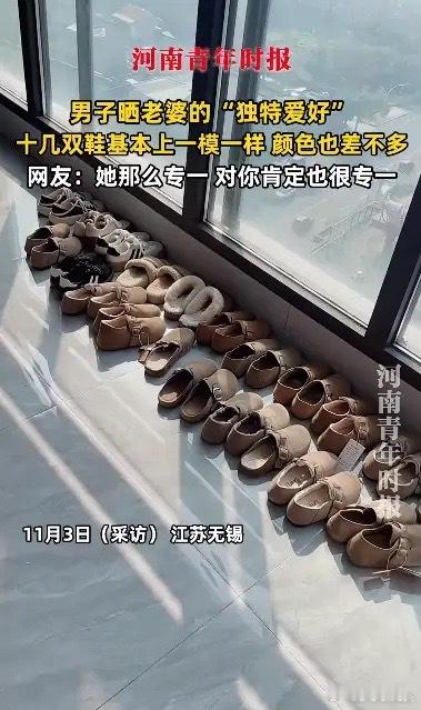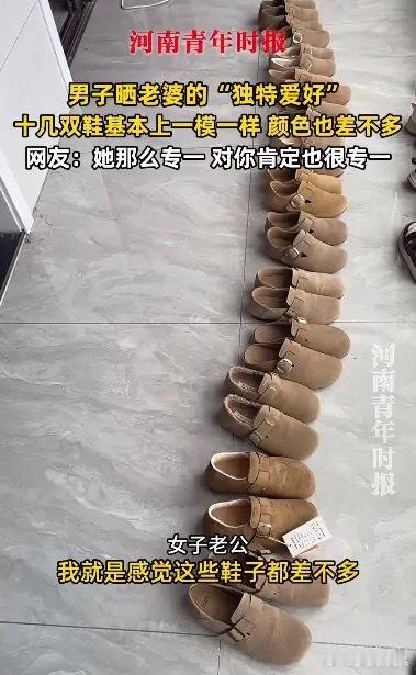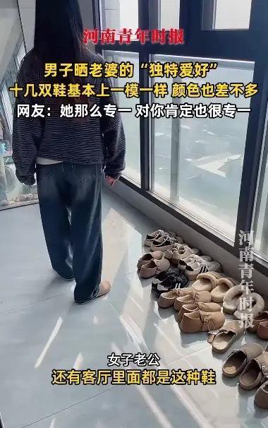 “太尴尬了!”近日,江苏无锡,一男子闲来无事整理老婆的鞋子,结果发现同样颜色同样款式的鞋子,老婆竟然一口气买了15双!男子看到后惊呆了直呼老婆的爱好“很独特”,网友:对鞋专一就是对人专一啊。