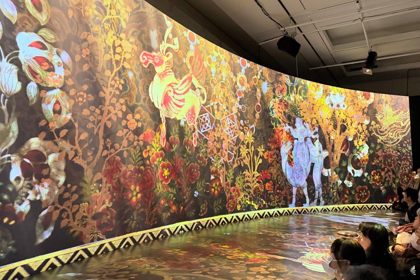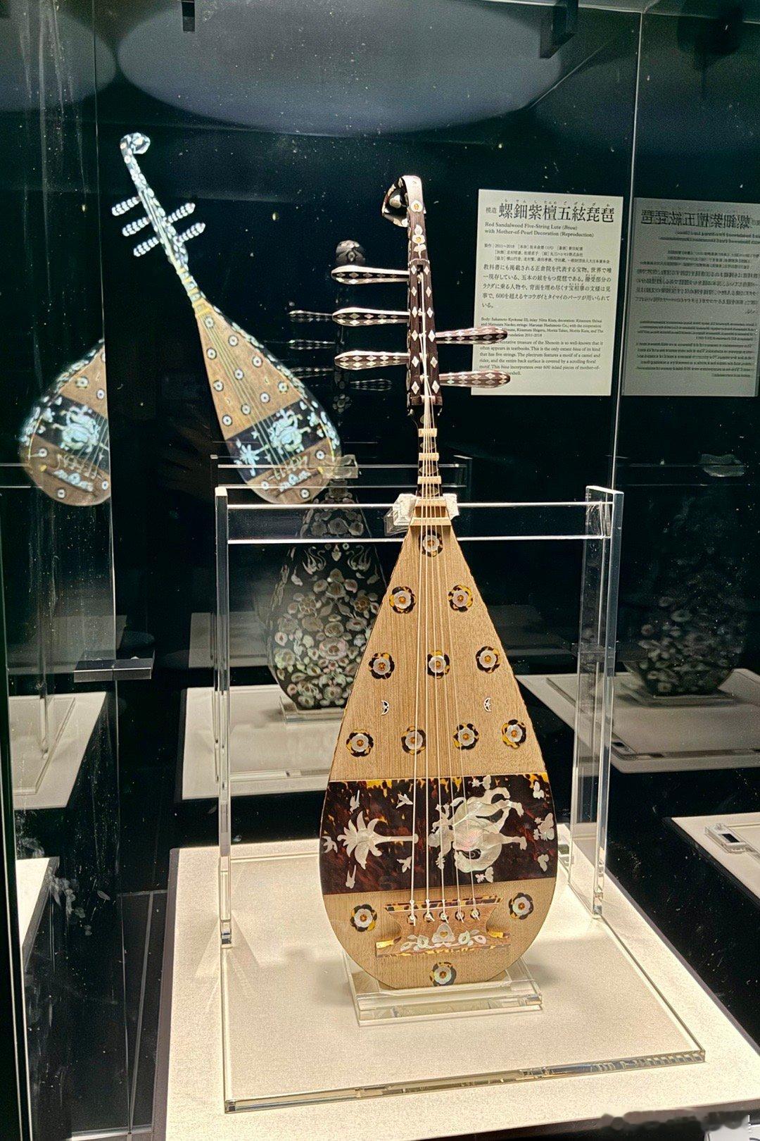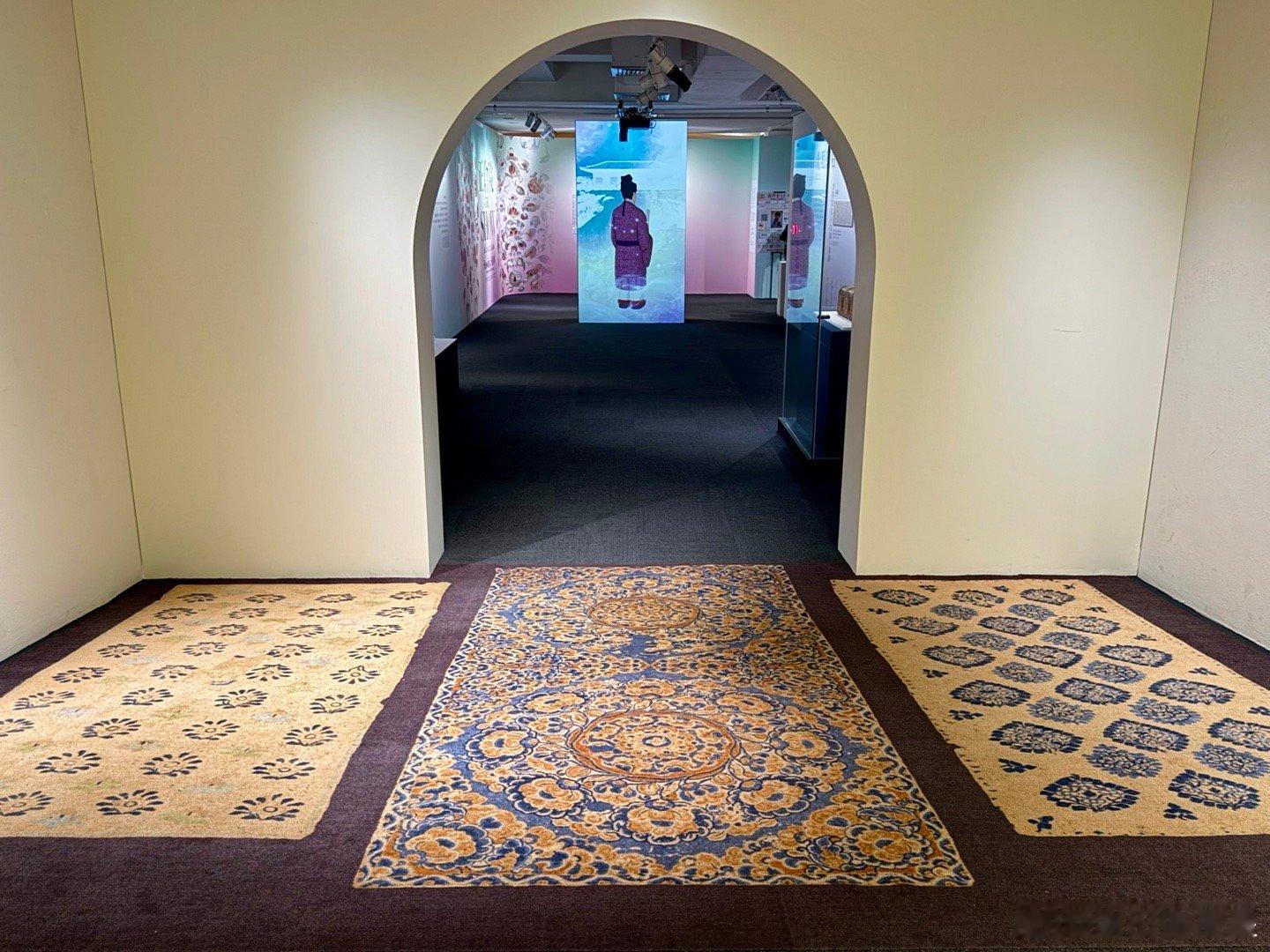 满满的盛唐华丽,虽然没有真的宝物,但绝对值得一看。今年奈良正仓院展上展出的花毡,复制品直接铺地上,螺钿紫檀五弦琵琶、鸟毛篆书屏风和蓝玻璃杯都是高精度的复制品。两场精彩的视频展示大概15分钟,看的眼花缭乱。还能听正仓院乐器的录音。
