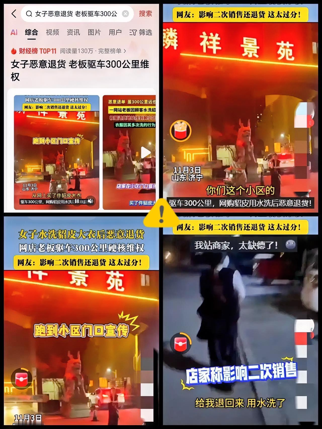 山东济宁这宝妈也太社死了!网购貂皮大衣水洗后退货,居然被卖家驱车300公里追到小区门口讨说法,手机号还被曝了,整个小区都知道这事儿,估计用不了多久就能对号入座,爱占便宜的名声算是彻底传出去了。 说真的,2000块的貂皮大衣,明明是自己水洗弄坏影响二次销售,平台还同意退货、卖家申诉又失败,换谁都得气炸。有的卖家为了留着店铺忍了,但这位王女士偏要硬刚,其实也能理解——凭啥要为别人的失误买单?平台这波甩锅也太不地道了,完全没考虑卖家的损失。 要是当初宝妈能主动跟卖家协商,别想着躲着解决,也不至于闹到里子面子全没了。这事里,买家的侥幸、平台的偏袒,比卖家的“硬刚”更让人不舒服。 你们觉得这事里,是卖家太较真,还是宝妈和平台的问题更大?来评论区说说!