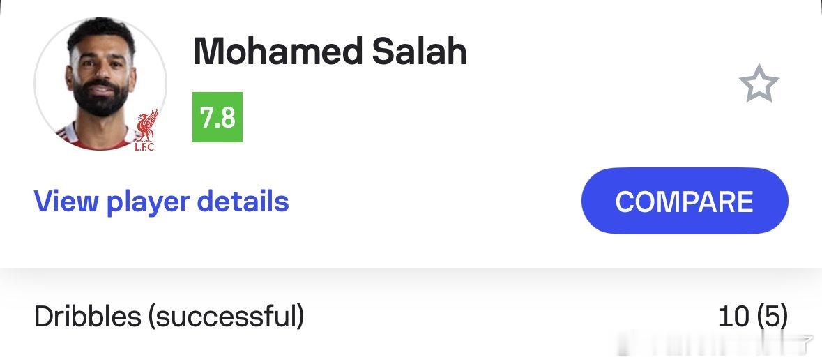 自2024年9月以来,在萨拉赫为利物浦出战的最近60场比赛中,仅有两场完成5次以上成功过人: