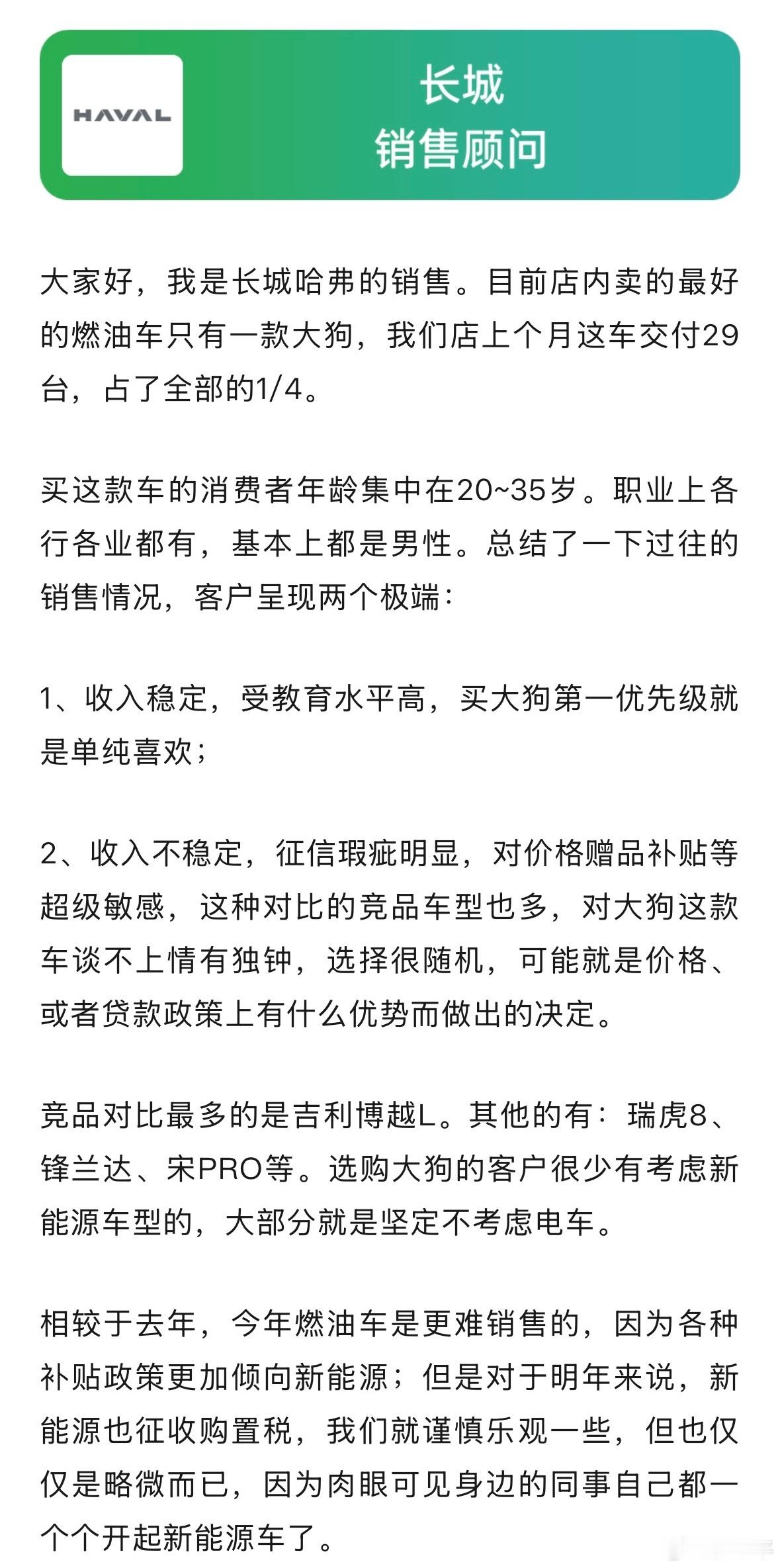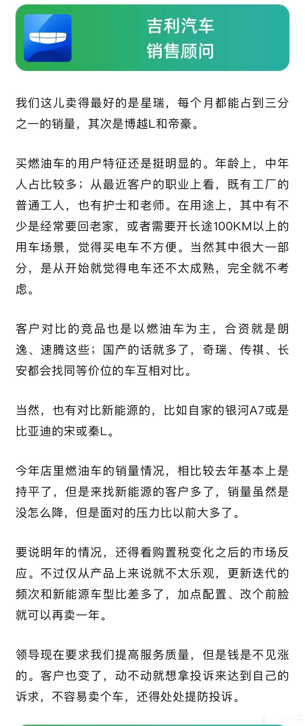 国产新能源车发展迅猛,但同时也能观察到,有很多国产燃油车也挺受欢迎。今天找了几位销售顾问,一起看看近期国产燃油车的销售情况。