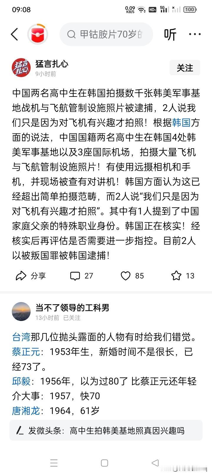 不对吧? 网络上有消息说,我们的两名高中学生在韩国的四个机场拍摄了1000千多幅军用飞机和民航系统的各种照片,当场被韩国警方拘捕。 虽然两名高中生声称,他们仅仅是兴趣爱好罢了,据说,其中一个高中生还透露了他父亲的特殊身份等等。但最终韩国警方还是以“叛国罪被韩国逮捕”。 这就令人莫名其妙了。他们是我们的高中生,又不是韩国国籍的人,何来什么“叛国罪”可言?(见下附文详情)