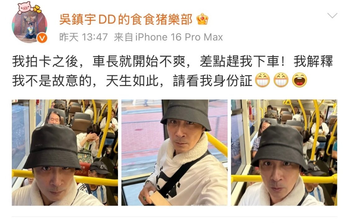 吴镇宇刷老年卡被质疑 哈哈哈哈哈哈镇宇哥是天生的年轻貌美才华横溢风趣幽默呢[哈哈][哈哈][哈哈]