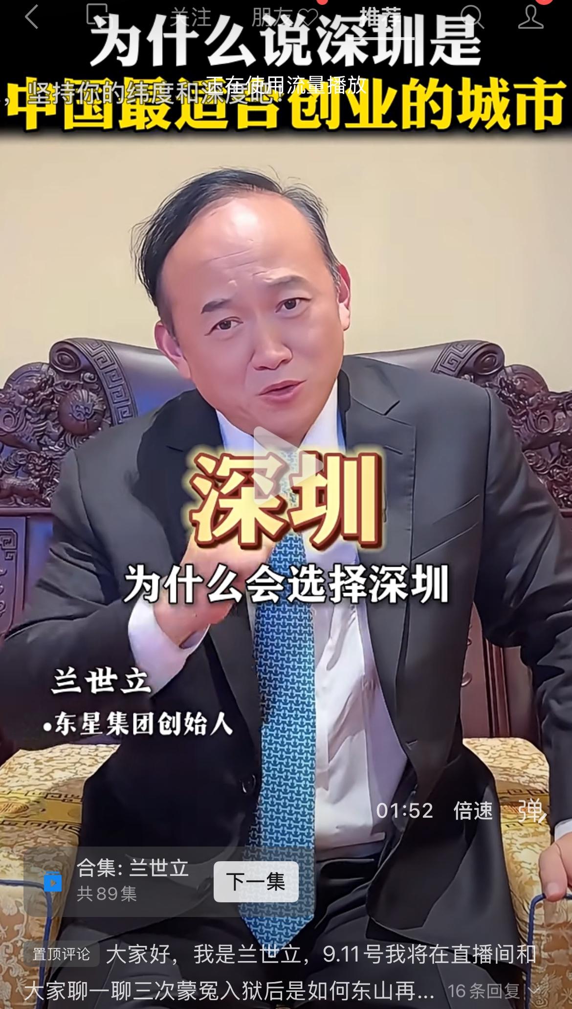 湖北前首富,著名企业家兰世立:深圳是中国最适合创业的城市。 兰世立最近谈到了创业