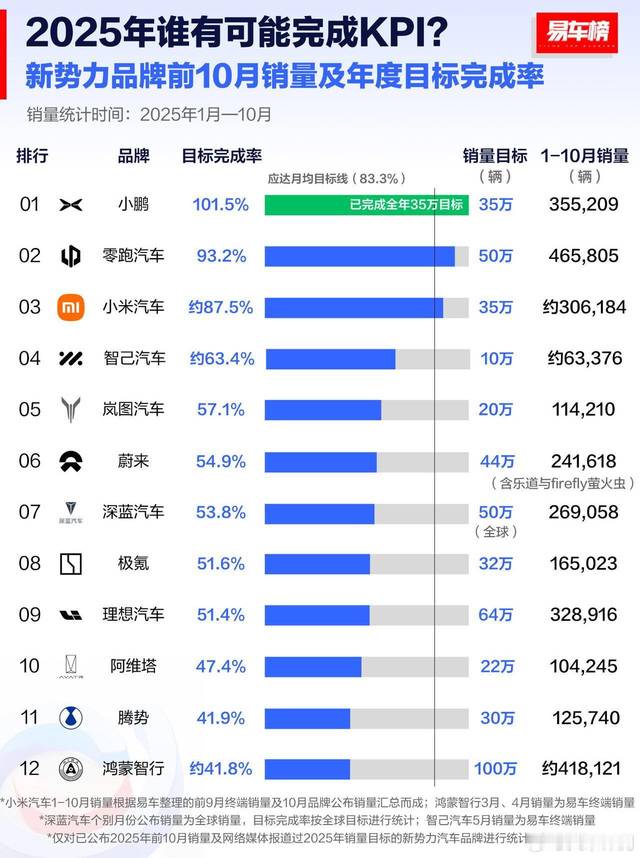 没想到只有小鹏才提前完成了作业,就目前的销量来看,蔚来和理想是铁定完不成今年目标的!所谓的新能源三剑客“蔚小理”,现在开始渐行渐远了!零跑目标最高,但在年底完成50万台的任务也是板上钉钉的!小米也没有什么问题,其他智己、岚图、深蓝、极氪都要扣年终奖!