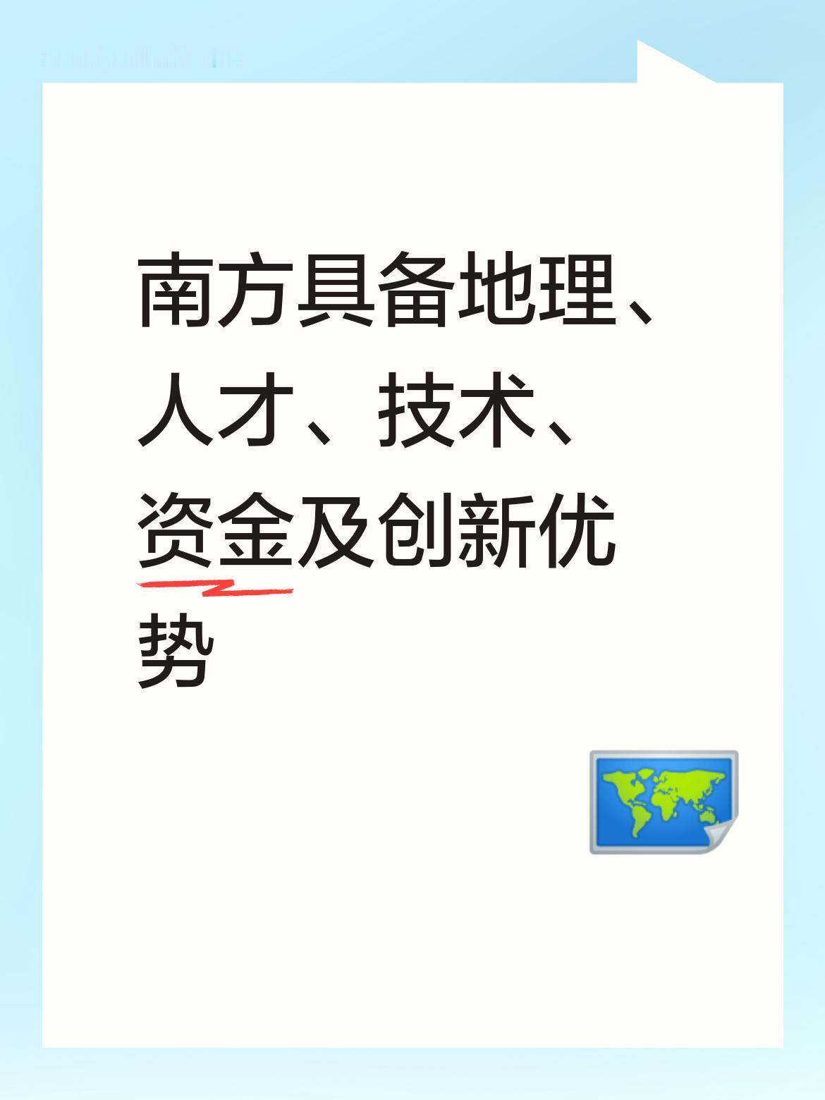 南方发展前景确实一片光明。从地理位置看,靠海让它拥有海运便利,像美国、欧洲、非洲拉美,沿海城市往往最先发展,因为海运成本低,利于出口加工贸易。 南方还有着创新的土壤。古代南方自然资源差,生存不易,反倒激发人们去创造,创业环境逐步形成。 国家政策也给了南方很大支持。虽然北方沿海城市也有政策,但南方在地利和人和方面更有优势,形成发展合力。如今全球南方都在崛起,南方地区作为其中一部分,凭借自身优势,未来在经济、科技等领域定能有更出色的表现,发展值得期待。