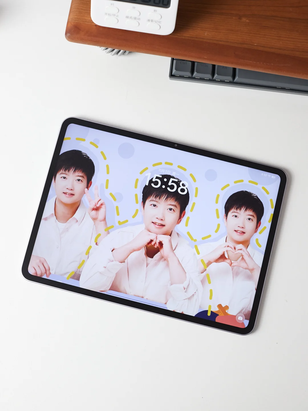 屏幕看起来很清晰,屏幕材质有点和其他平板不一样,它不会反光,户外光线照射也能看清,摸上去是磨砂感。我挺客服说这平板性能很强,原神和恋与深空这些大型游戏也能流畅运行,桌面还有蓝色的WPS,打开居然和电脑上的一样,那以后在上面办公也挺方便的,电脑都不用掏出来了。