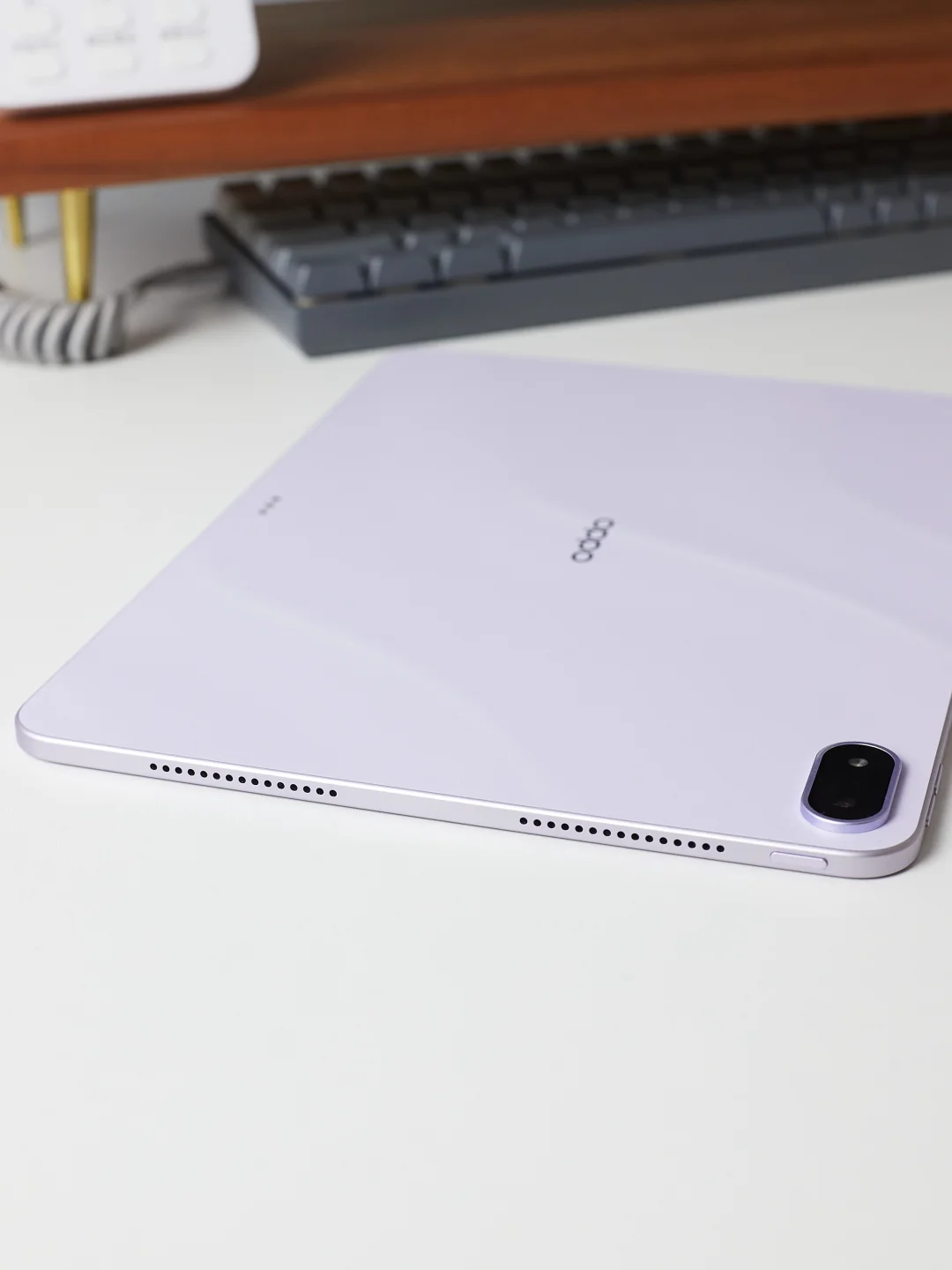 选的是我本命色——紫色,网上图片可能看不出什么,但实物巨好看!紫色的后盖有流动的光影,布灵布灵的,12.1英寸的屏幕不大不小,而且平板很轻薄,我单手也能拿着。