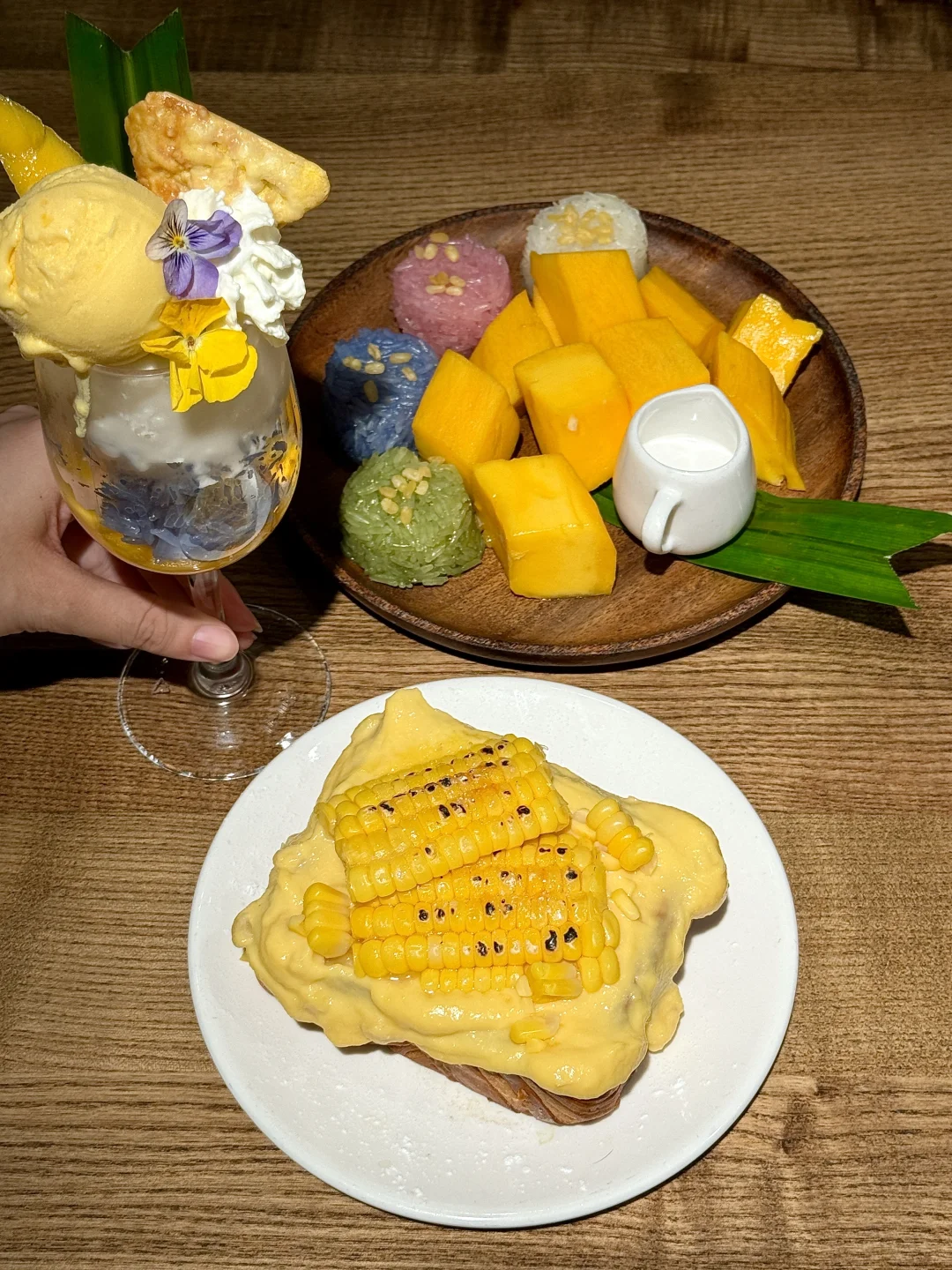噶抛叶炒猪肉碎、冬阴功大虾汤🦐、曼谷蟹肉滑蛋饭、四色芒果糯米饭、曼谷玉米卡士达酱吐司🌽、泰奶雪花绵绵冰……都很好吃,盲点不踩雷💥