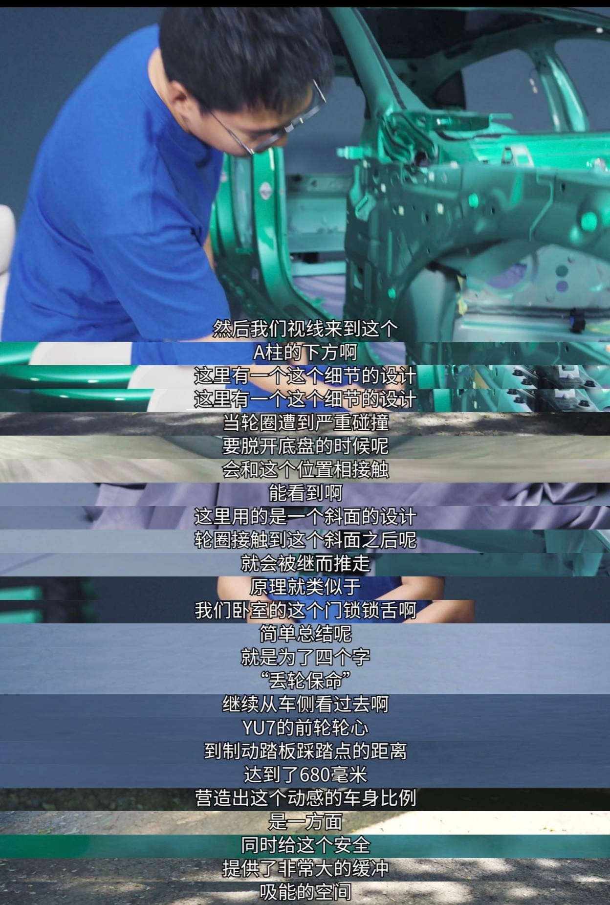 A柱:2200兆帕热气胀工艺;内嵌防滚架:超强钢内嵌A、B柱内侧(最硬核的材料)