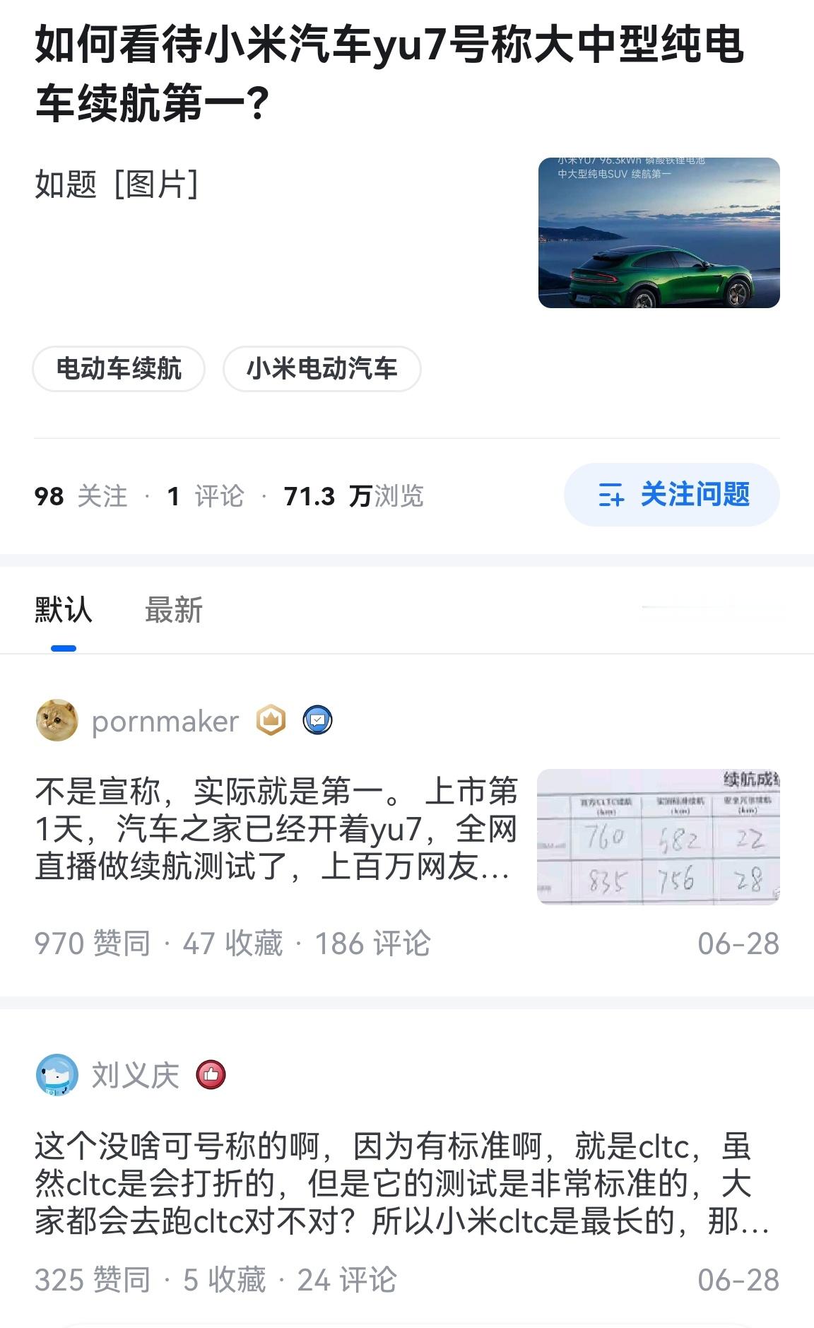上市第1天,汽车之家已经开着YU7全网直播做续航测试了,网友共同见证,最后续航达成率93%,标准版实际续航756千米,位列中大型纯电车续航第1名。