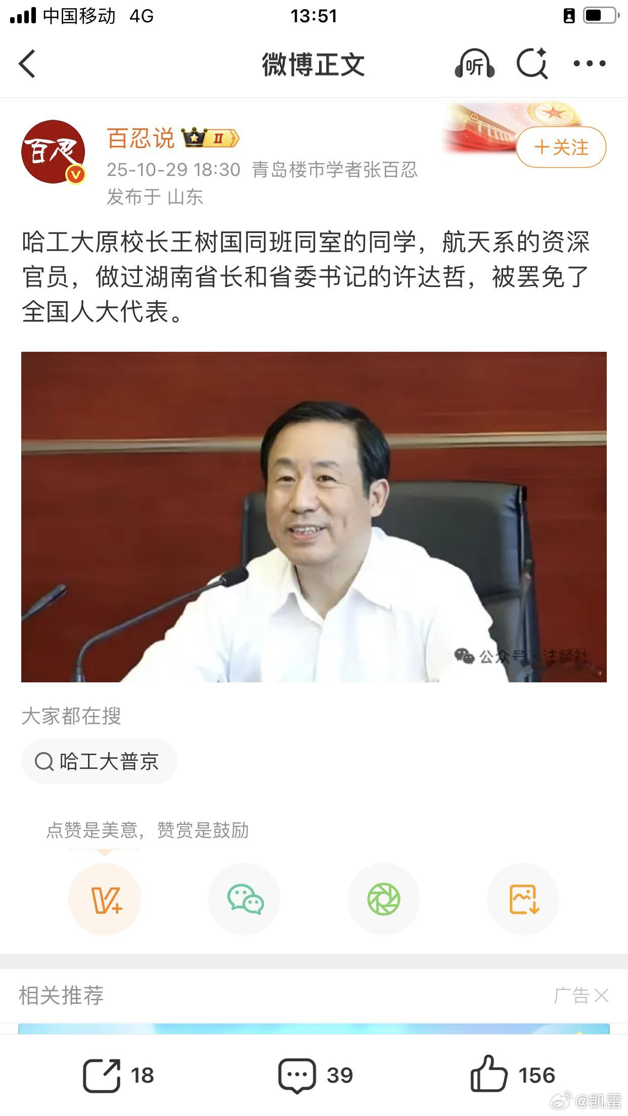 整整九年差一个月的今天,许达哲当选湖南省长。整整一年过去,许达哲终于辞去人大代表。