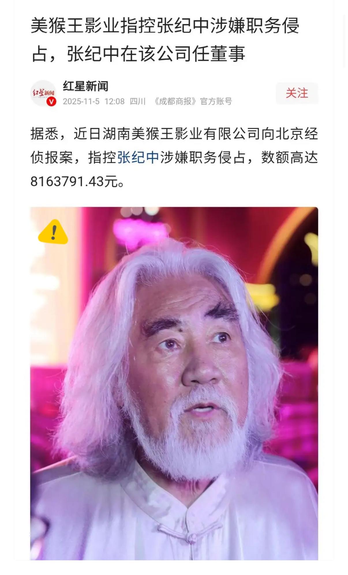 这次张纪中麻烦大了。 前段时间,张纪中夫人杜星霖口嗨表示张纪中是上亿身家,虽说口嗨不是什么大事,但是却给张纪中惹了不少麻烦。 不得不说是真的有钱,就因一句口嗨给自己惹了麻烦,有钱人还是低调点好,俗话说的好祸从口出。 更加不巧的是,近日湖南美猴王影业公司报案,指控张纪中职务侵占,侵占金额高达千万。 如今张纪中正在接受调查,这杜星霖在一旁看着,都不知道她是否懊悔当初“炫富”之言。 网友说:坚决支持税务部门严查张纪中,所拍电视剧的真实收入和纳税情况,如果违法偷税漏税,马上抓起来处理。决不能让张纪中这种人消遥法外,危害社会,给广大民众一个交代!!! 还有的说:税务部门也该行动查一查了.一岁的娃娃都身价百亿.看看老张头两口子漏了多少税 张纪中