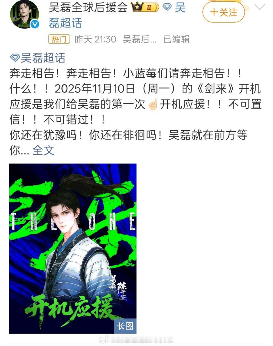 吴磊《剑来》第一季笼中雀路透🈶,和陈平安很吻合,11月10日开机仪式