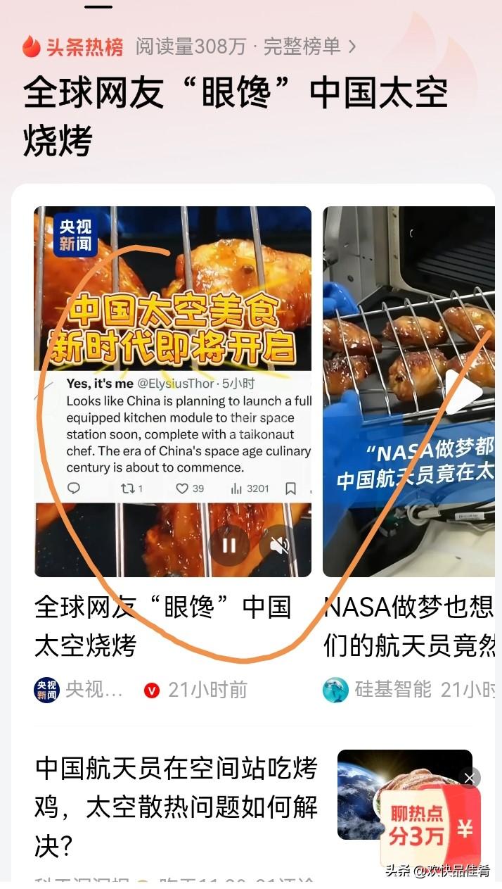 中国人把烧烤搞到太空上去了。 让外国人羡慕嫉妒恨吧。 中国宇航员的太空烧烤太酷了!在距离地球400公里外的中国空间站,飘起烤鸡翅的香味,这可不是梦。神舟飞船送来“硬核烹饪装备”,航天员围着太空烤箱,等着鸡翅变焦香。从烤串、牛排到烤玉米,太空食谱“万物可烤”。 太空“烤箱”可不简单,通过技术攻关实现无油烟处理,满足空间站油烟排放标准,还能连续可靠运行500次。如今中国空间站食品种类达190多种,10天食谱不重样。从“吃得饱”到“吃得香”,太空烧烤背后是尖端科技,更是中国太空技术的逆袭。 太空餐 太空美食