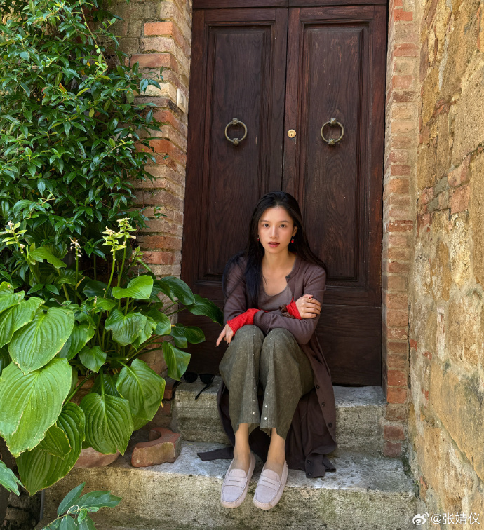 张婧仪意大利 plog 包含托斯卡纳明信片内容,画面里她坐在石板路上,身旁是盛开的向日葵,尽显活力。张婧仪意大利plog张婧仪托斯卡纳明信片