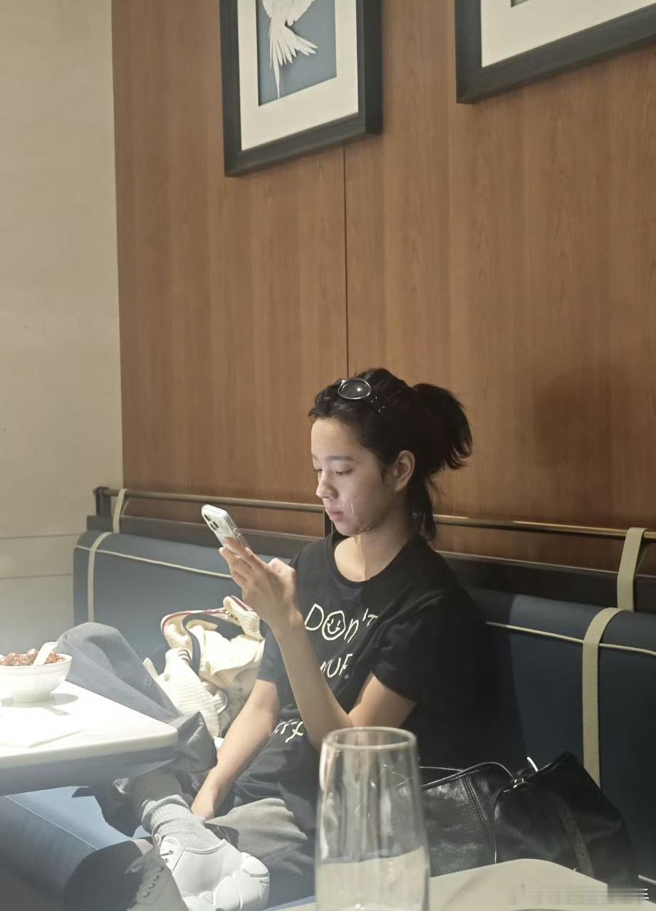庄达菲敷着面膜吃东西女明星真的好拼,吃饭都得敷面膜[傻眼]