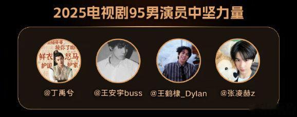 丁禹兮王安宇王鹤棣张凌赫95四小生获评2025电视剧95男演员中坚力量,恭喜帅