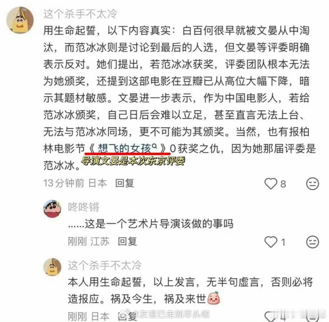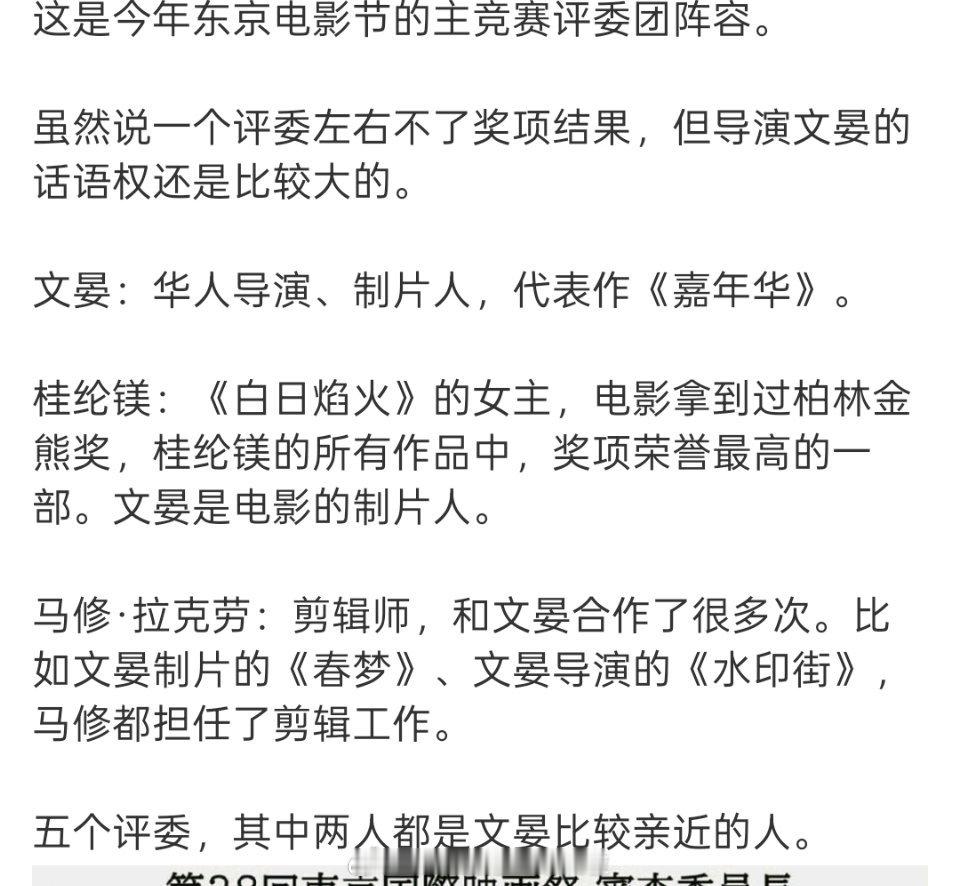 爆料总结:导演文晏是东京电影节评委,不让fbb二封影后,为了报仇柏林电影节fbb当评委没有给文晏导演的作品任何奖
