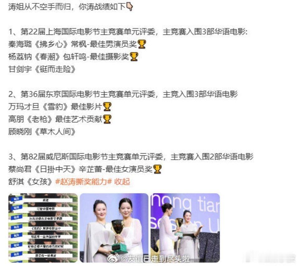 结合之前赵涛当评委的美谈,有种现在国际电影节是我家评委后花园的感觉,是不是有点太神话某一个评委的力量了? 东京电影节影后双黄蛋东京电影节 张律 王传君上来好像一点没有笑容