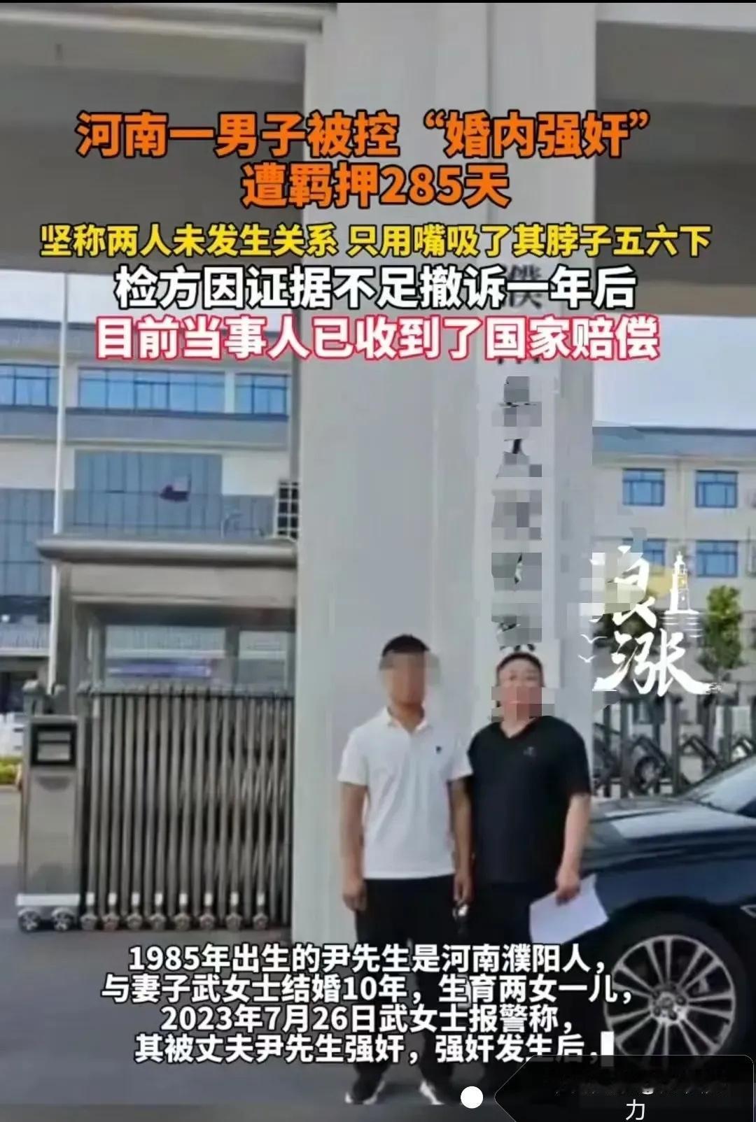 河南一女子两次起诉离婚都未成功,便诬告丈夫婚内强 奸。丈夫坚称未和妻子发生关系,只是吸了妻子脖子五六下。最后,丈夫被批准逮捕,但在被羁押285天后,因没有足够的证据证明丈夫强 奸,丈夫最终获得自由。他出来后申请了国家赔偿,赔偿款已经到位。但网友们觉得,犯错的是他的妻子,为什么要找国家赔偿呢? 丈夫出来那天,头发都白了些,攥着赔偿决定书,说“这大半年,觉都没睡踏实过”。有人问他恨不恨妻子,他盯着地面,半天没说话,只摇了摇头。 小区里的人凑在一起议论,张阿姨说“明明是女的撒谎,凭啥国家掏钱赔”。旁边的小伙子反驳:“逮捕是国家机关批的,证据不足就得赔,没毛病。”两人说着就吵了起来。 妻子后来没露面,听说搬去了外地。有人说她该被追责,也有人叹“两口子闹到这份上,谁都没赢”。丈夫把赔偿款存进银行,没动过,说“这钱带着委屈,花着不踏实”。 律师在网上解释,国家赔偿是因为司法程序有误差,跟妻子的过错不冲突,妻子若涉嫌诬告,仍可能被处理。可网友们还是不理解,觉得“犯错的人没受罚,反倒国家买单”。 丈夫现在很少出门,偶尔去菜市场,遇见熟人也只是点头。285天的羁押,赔偿款补不回那些日子,而妻子的诬告,像根刺,扎在两家人心里,拔不掉。河南婚姻悲剧 婚內强奸