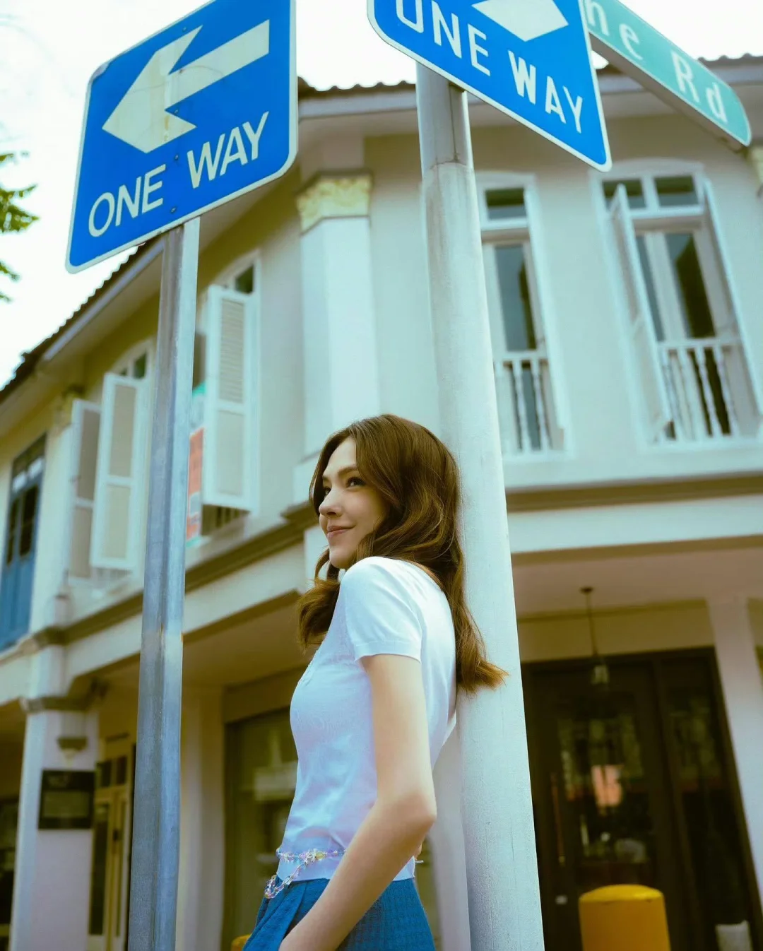 1988年,27岁的陈冲在上海街头,好喜欢这种年代感,穿的衣服现在也不过时